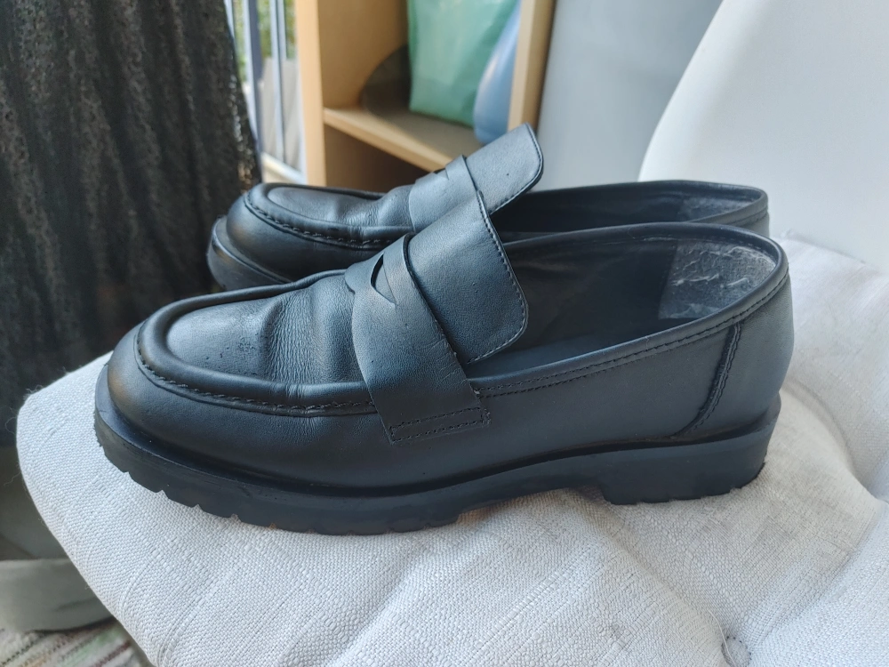 Selling a pair of black leather loafers made in Italy and perfect for the fall. Some small some signs of wear, and are still in very good condition. Look at the soles. Barely worn. Great for a classic look! The retail price at Brown's is 198 plus tax.