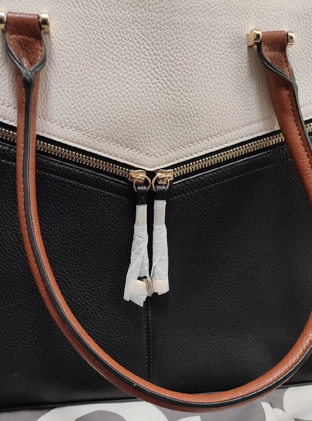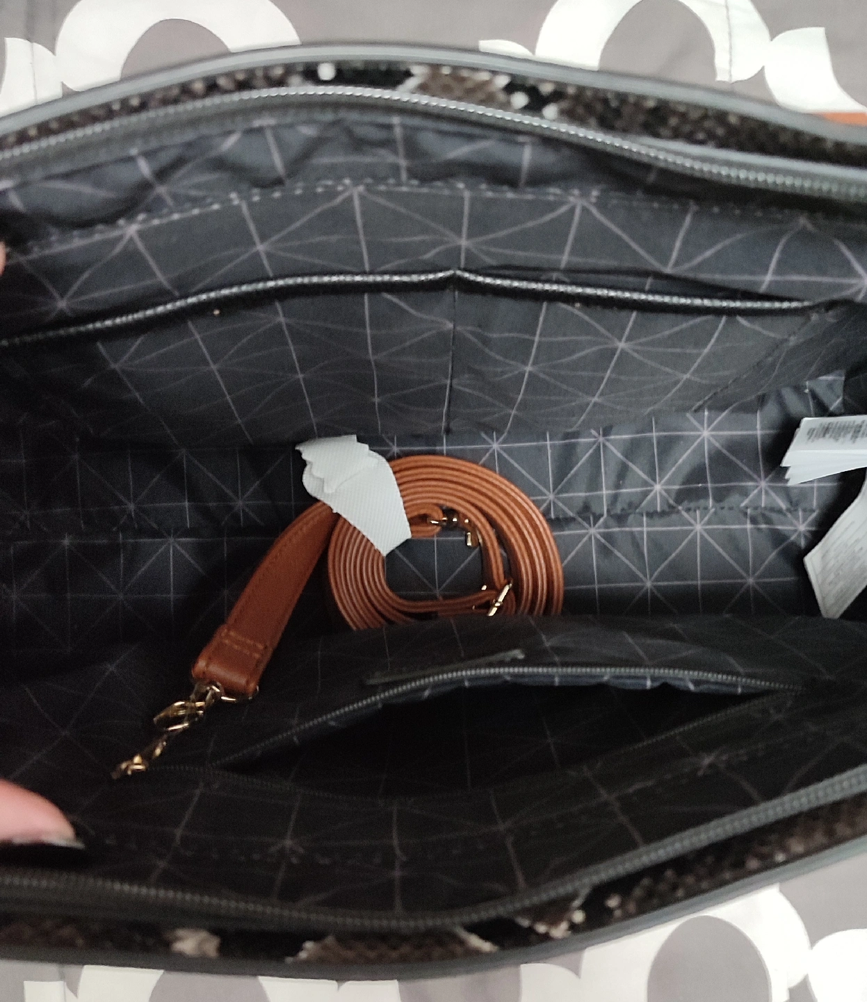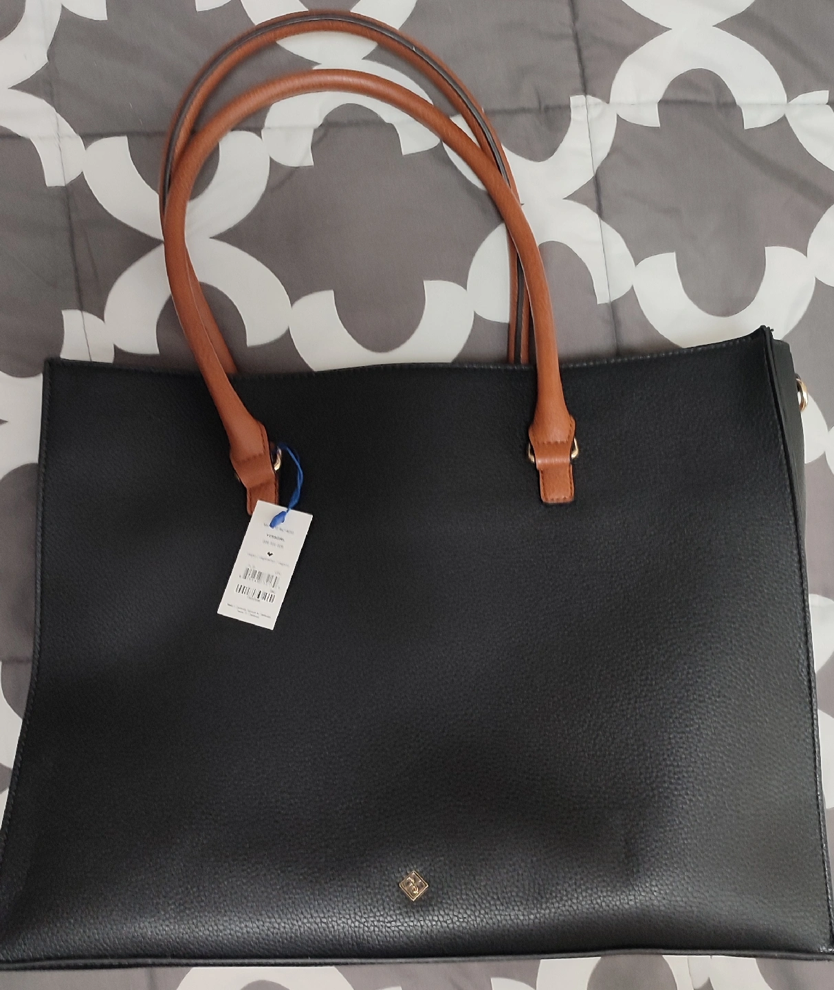 This is a brand new call it spring tote bag! It features a stylish black and white colour block design with brown handles. It also comes with an additional strap for crossbody wear. Perfect for everyday use!