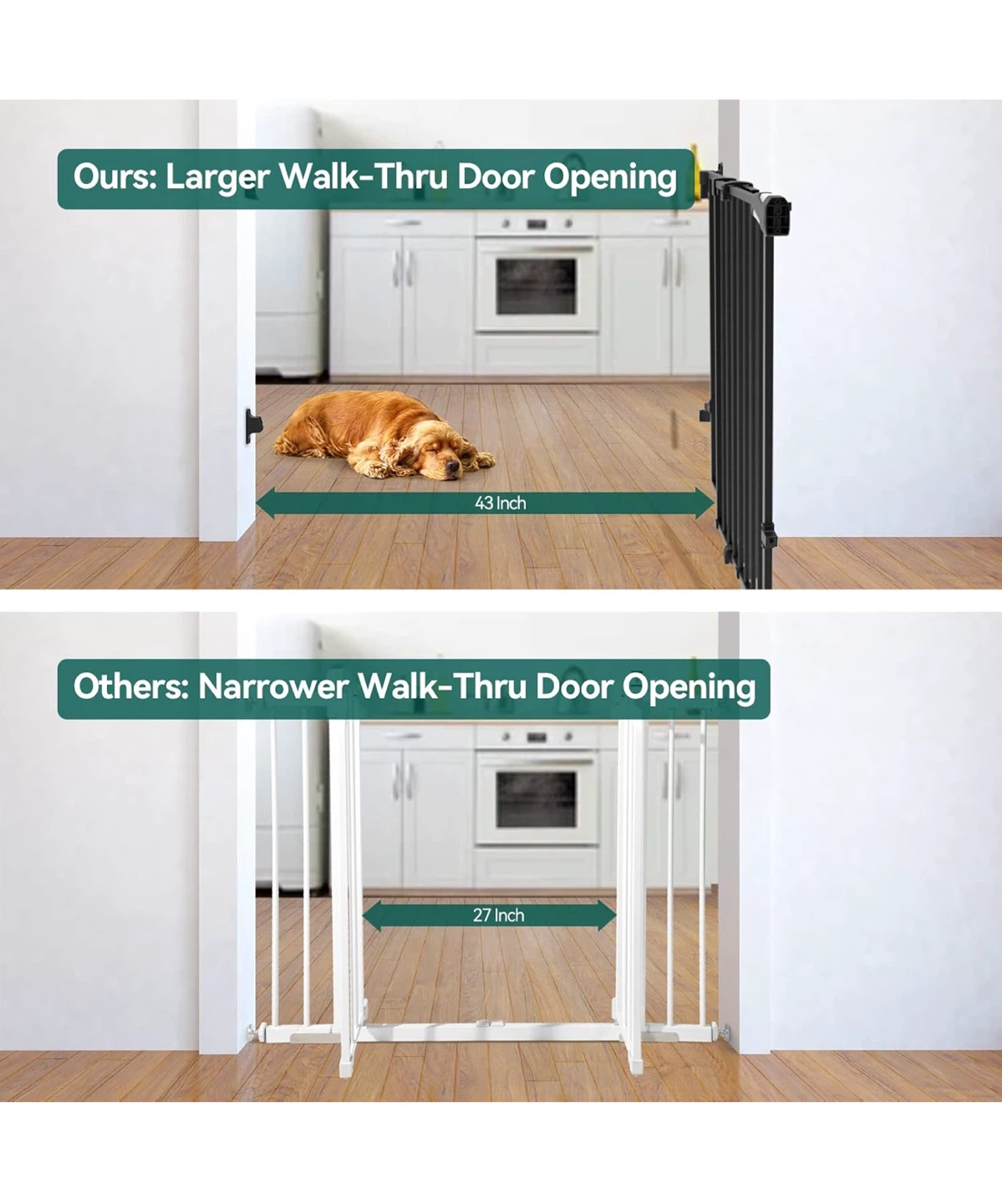 It also has a larger walk-thru door opening of 43 inches