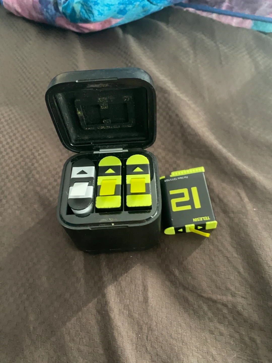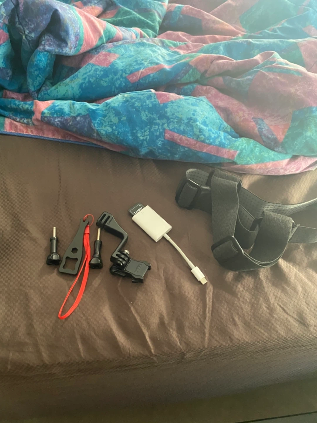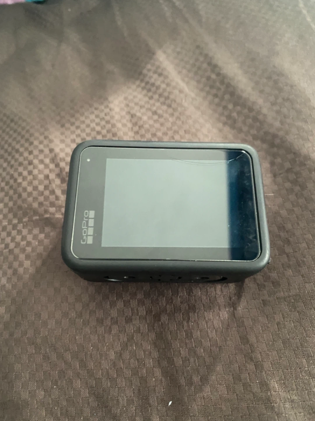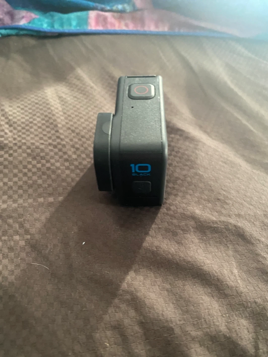 Selling a GoPro Hero 10 Black action camera. It comes with various accessories, including a head strap, mounting hardware, and a 4 batteries. small crack on the screen protector, but is in otherwise good working condition. comes with screen protectors also