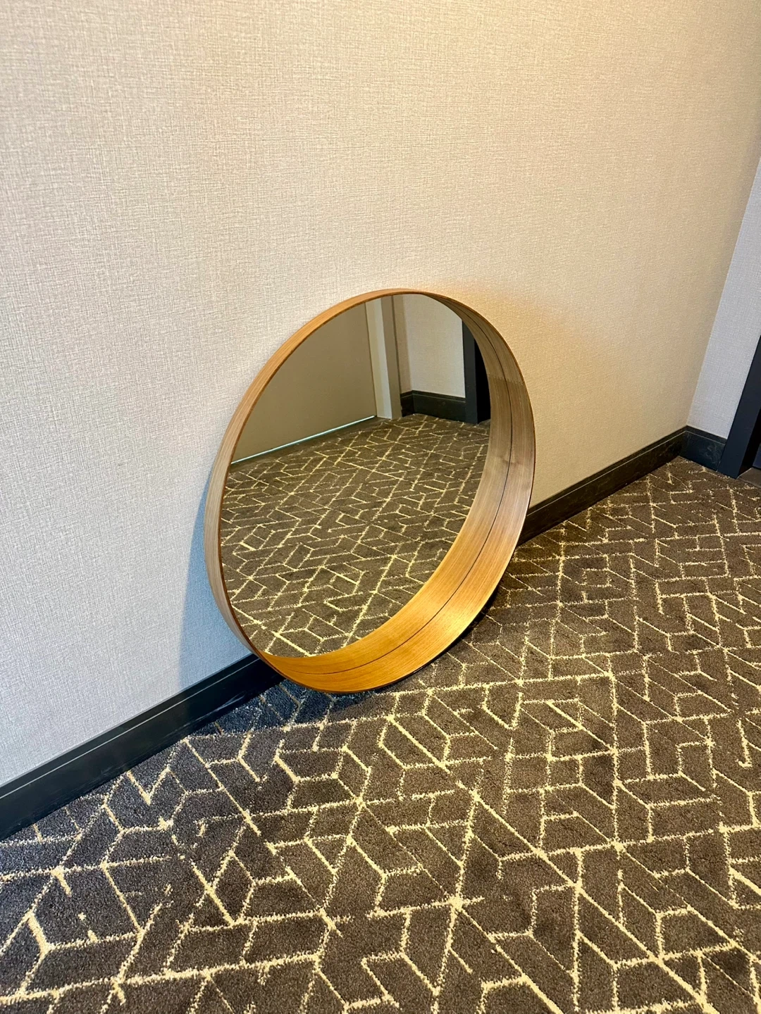 Selling a round ikea Stockholm mirror (big version) with a wood frame. It's in great condition and would look great in any room!