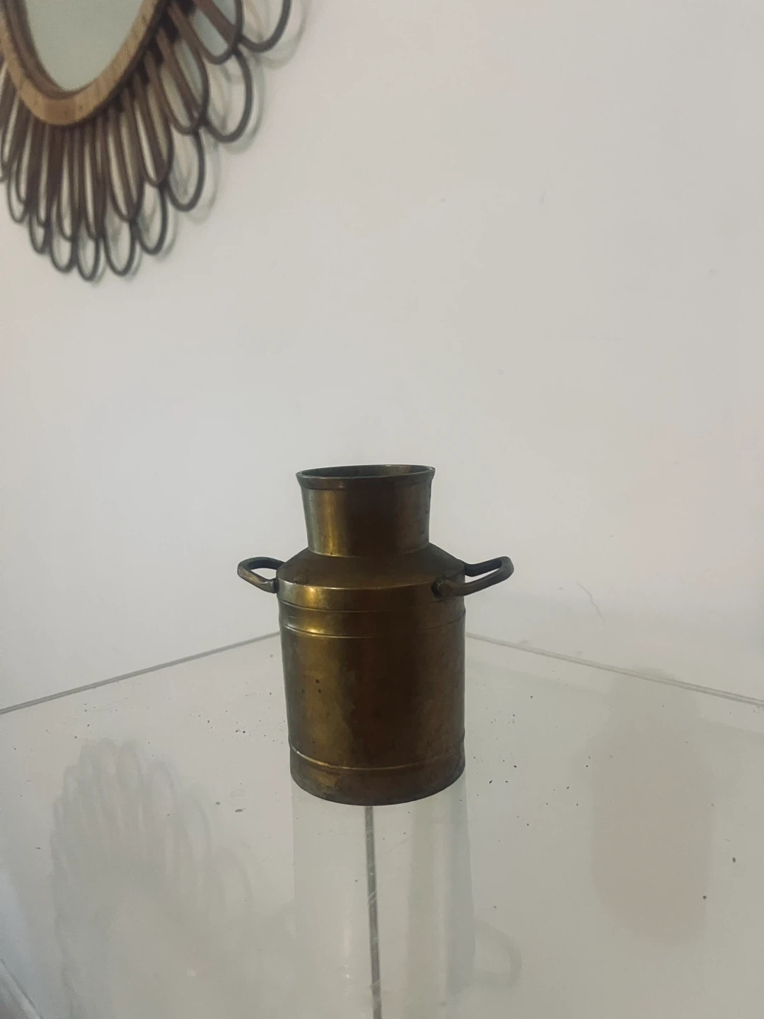 Selling a charming vintage brass milk can! It's a lovely piece for home decor and adds a touch of rustic charm to any space. It's in great condition, with a beautiful aged patina
