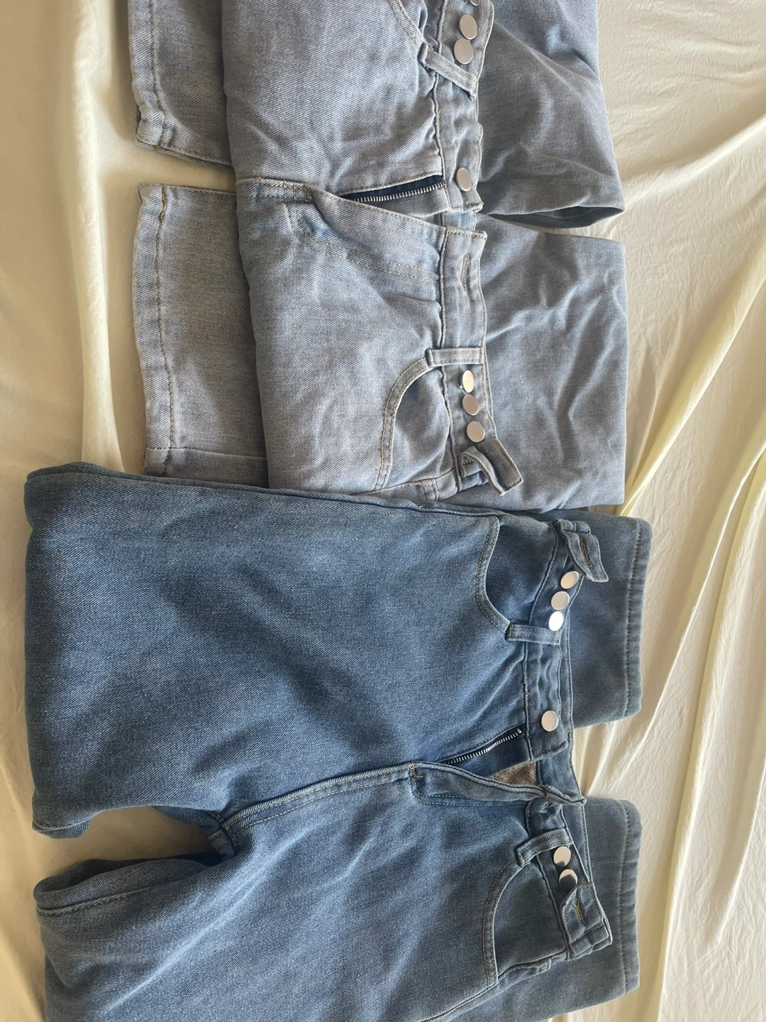 Selling two pairs of jeans. One pair is a lighter wash, and the other is a darker wash. Both are size medium and in great condition!