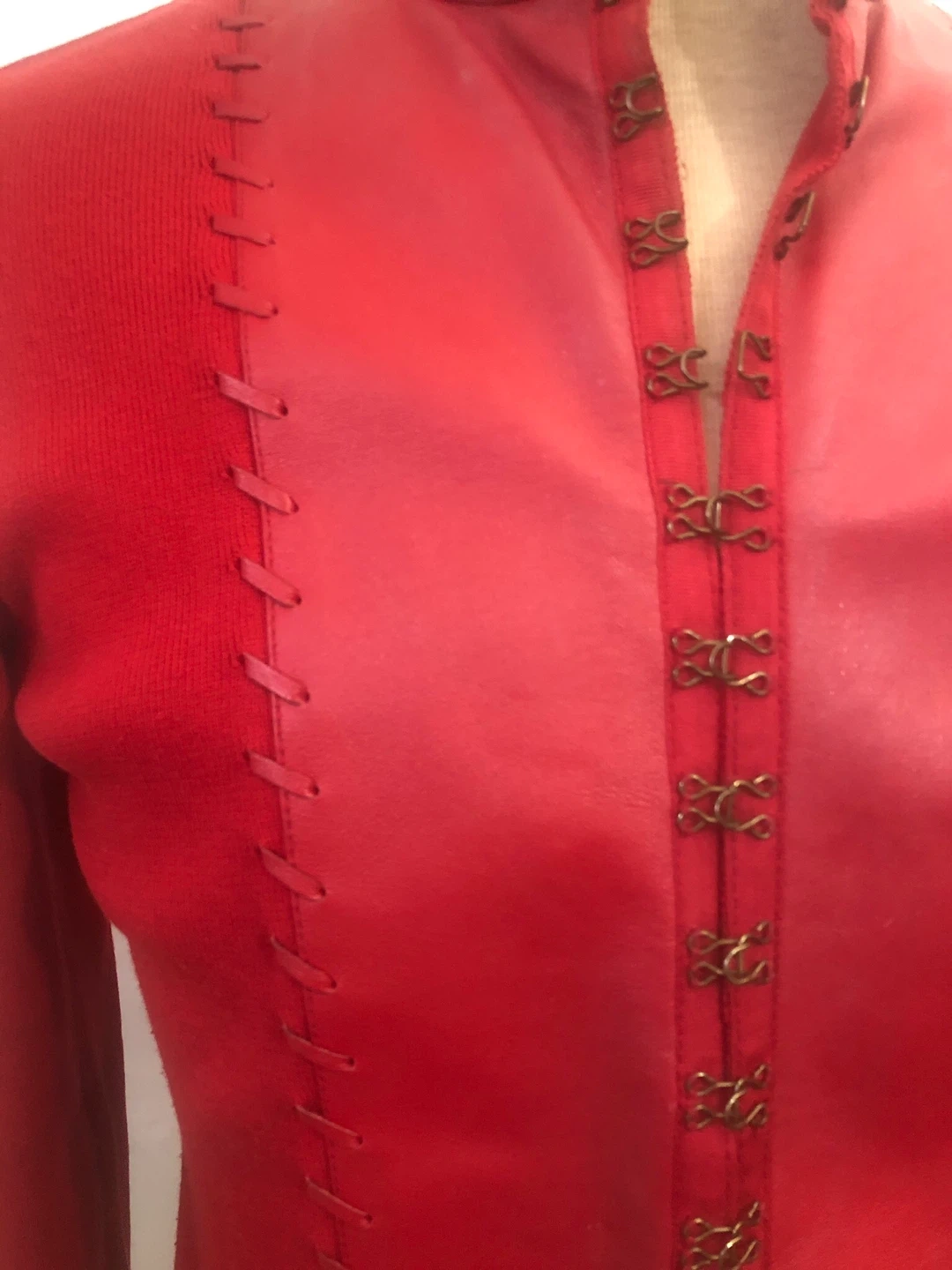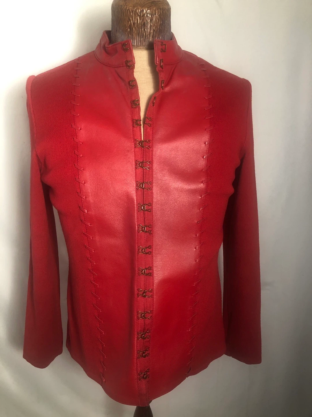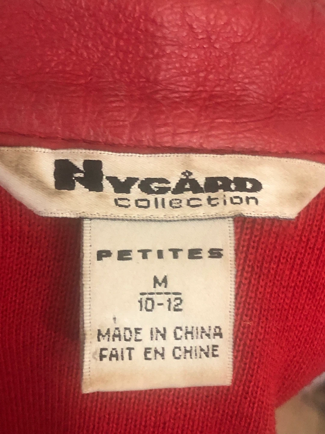 Women’s Red Genuine Leather Jacket. Nygard. Size Medium 10-12. Good condition 18” pit to pit 23” overall length 23” sleeve length $60 Cash or e-transfer Coliseum Area / Elmwood Park Shipping extra