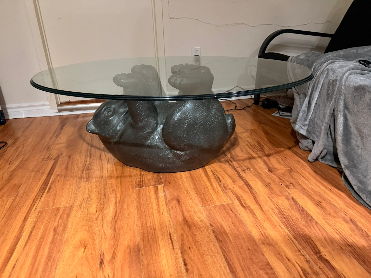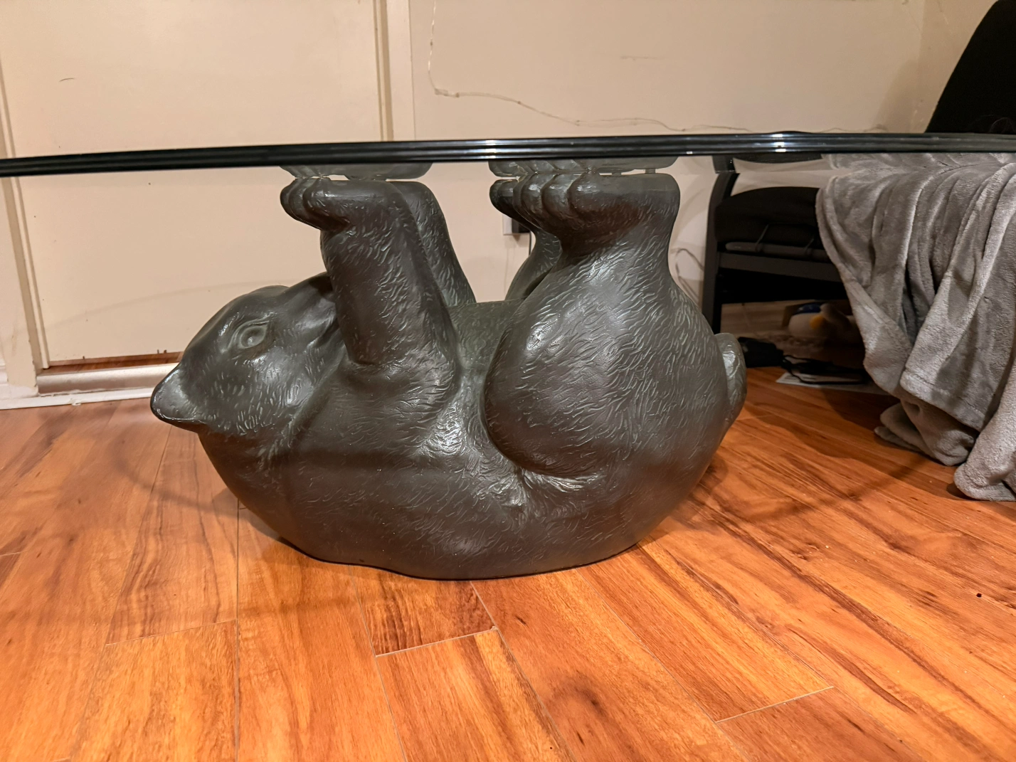 Buy & SellGlass Top Bear Base Coffee TableGlass Top Bear Base Coffee Table$74Selling a unique coffee table with a glass top and a bear-shaped base! It's a real conversation starter and adds a touch of whimsy to any living spaceConditionGoodWHERE TO MEETPape GreektownView MapSELLERverifiedKatUpper Beaches1103 reviews1 chats·2 favorites·35 viewsSEND CHAT TO SELLERHi Kat! I’m interested in your listing.Hi Kat! I’m interested in your listing.Get the Karrot app to chatSign In to chat