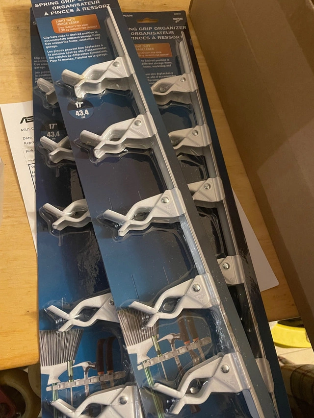 Hi, I’m selling my hard ware tool hanger set, which comes with 6 individual metal hangers. The hangers can be used for garage tools and other garden equipment. Durable metal hanger for all your appliances. 20 each or $50 for all. Serious buyers only. Thanks