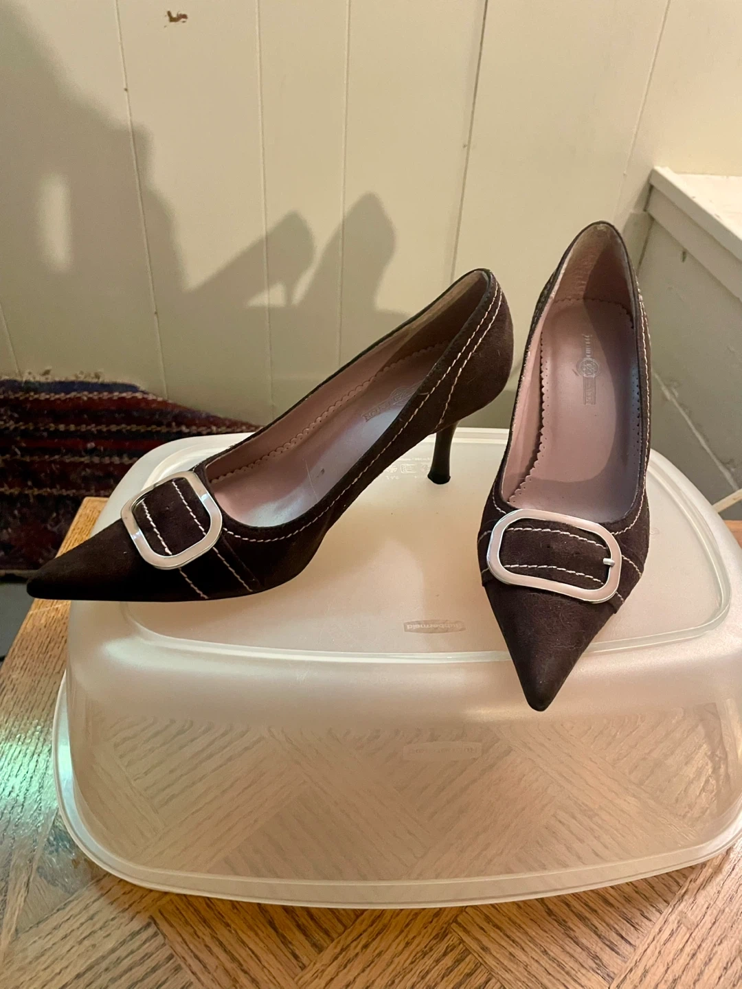 These are a pair of cute brown heels! They feature a pointed toe and a stylish buckle detail. Perfect for dressing up or down - Size 6