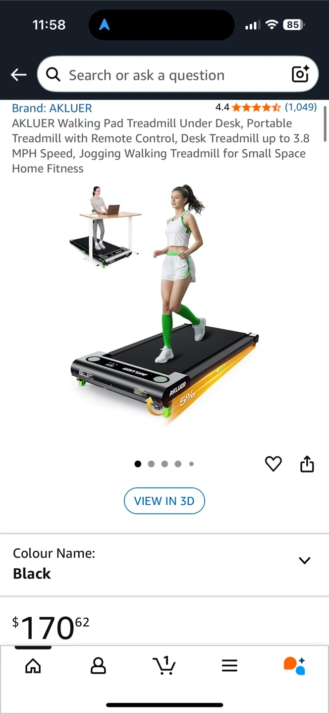 Selling an AKLUER walking pad treadmill in black. It's a portable treadmill with remote control, perfect for under a desk or small spaces. Great for walking and jogging up to 3.8 MPH. Originally bought for $170.62+tax