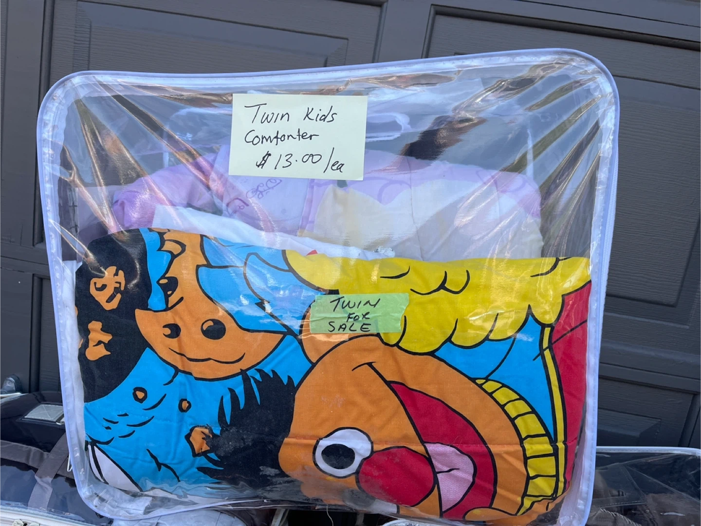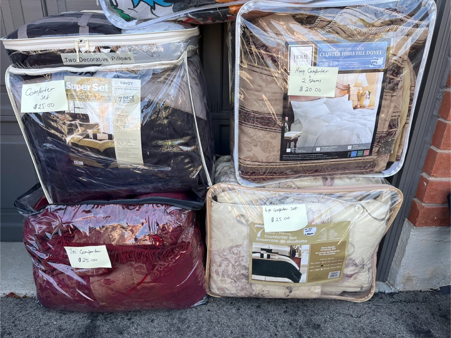 79Selling various comforter sets: - Queen Comforter Set: Includes a queen comforter and 2 shams. $20.00 - Super Set: A 7-piece comforter set with two decorative pillows. 25.00 SOLD - Queen Comforter set RED, comes with decorative pillows, shams and bed-skirt. $25.00 - Twin Kids Comforter: A fun and colourful twin-sized comforter for kids. Sesame Street and Tinkabell $13.00 each