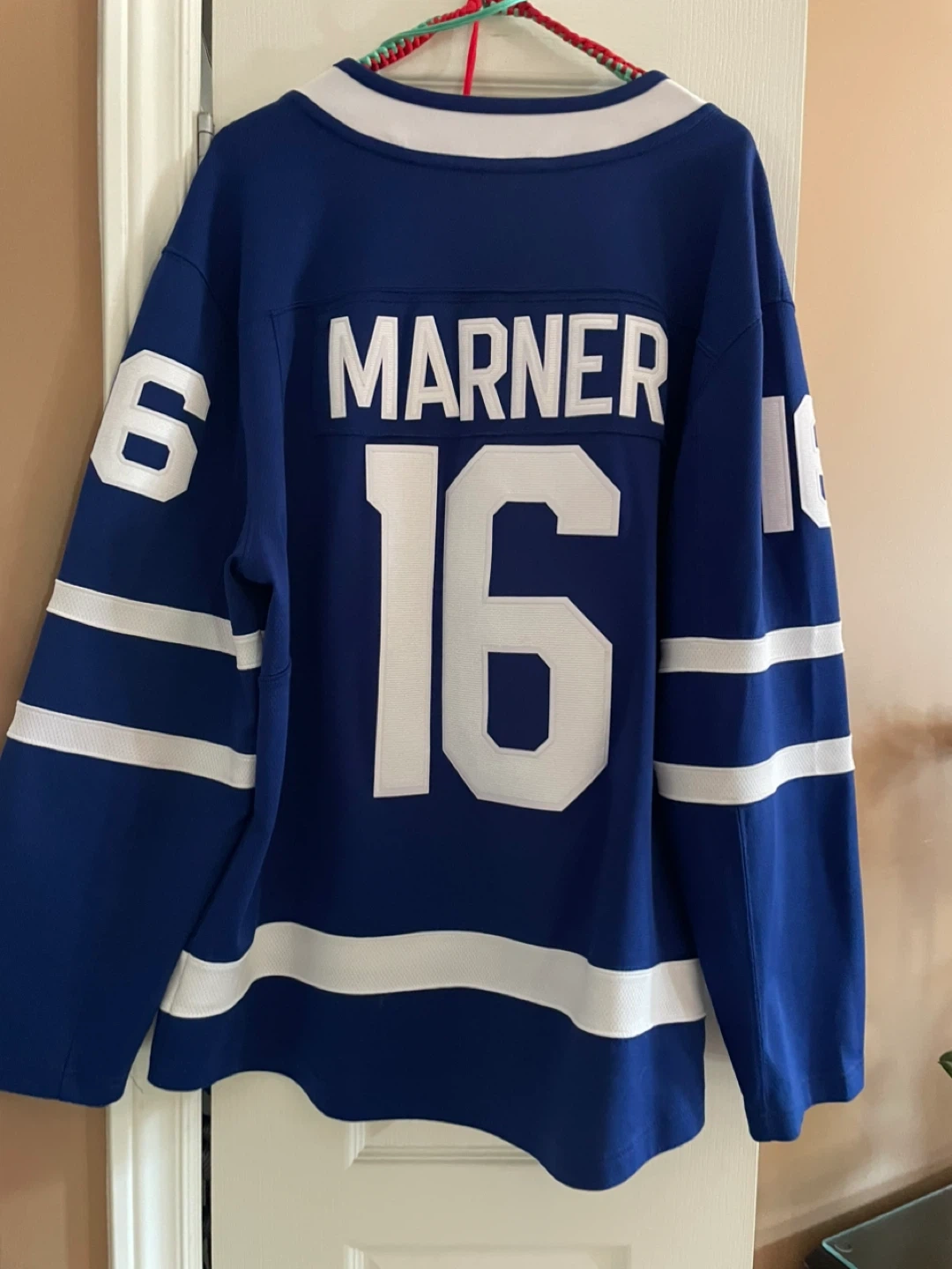 Selling a Toronto Maple Leafs jersey with Marner's name and number 16 on the back! It's in great condition and ready for the next game or to add to your collection. Men’s Large.