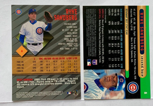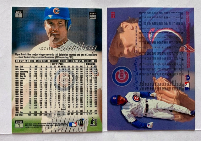 205Dive into the world of sports memorabilia with this exquisite collection of Ryne Sandberg baseball cards. Celebrating the legacy of this Major League Baseball icon, the set is a must-have for enthusiasts and fans of the Chicago Cubs. Each card captures a piece of Sandberg's illustrious career, making it an ideal addition to any sports trading card collection. The compilation offers a variety of cards that showcase different aspects of the player's achievements and contributions to the sport. Whether you're a dedicated collector or a new enthusiast, these cards serve as a tangible connection to the history of baseball and the storied career of Ryne Sandberg. Some cards not shown due to space restrictions. Ask for additional pictures. Condition: New More Info: Sports Collectibles Cashless payment: Yes For Sale By: Owner Curbside pick up: Yes Cash accepted: Yes Payment: Cashless payment, Cash accepted