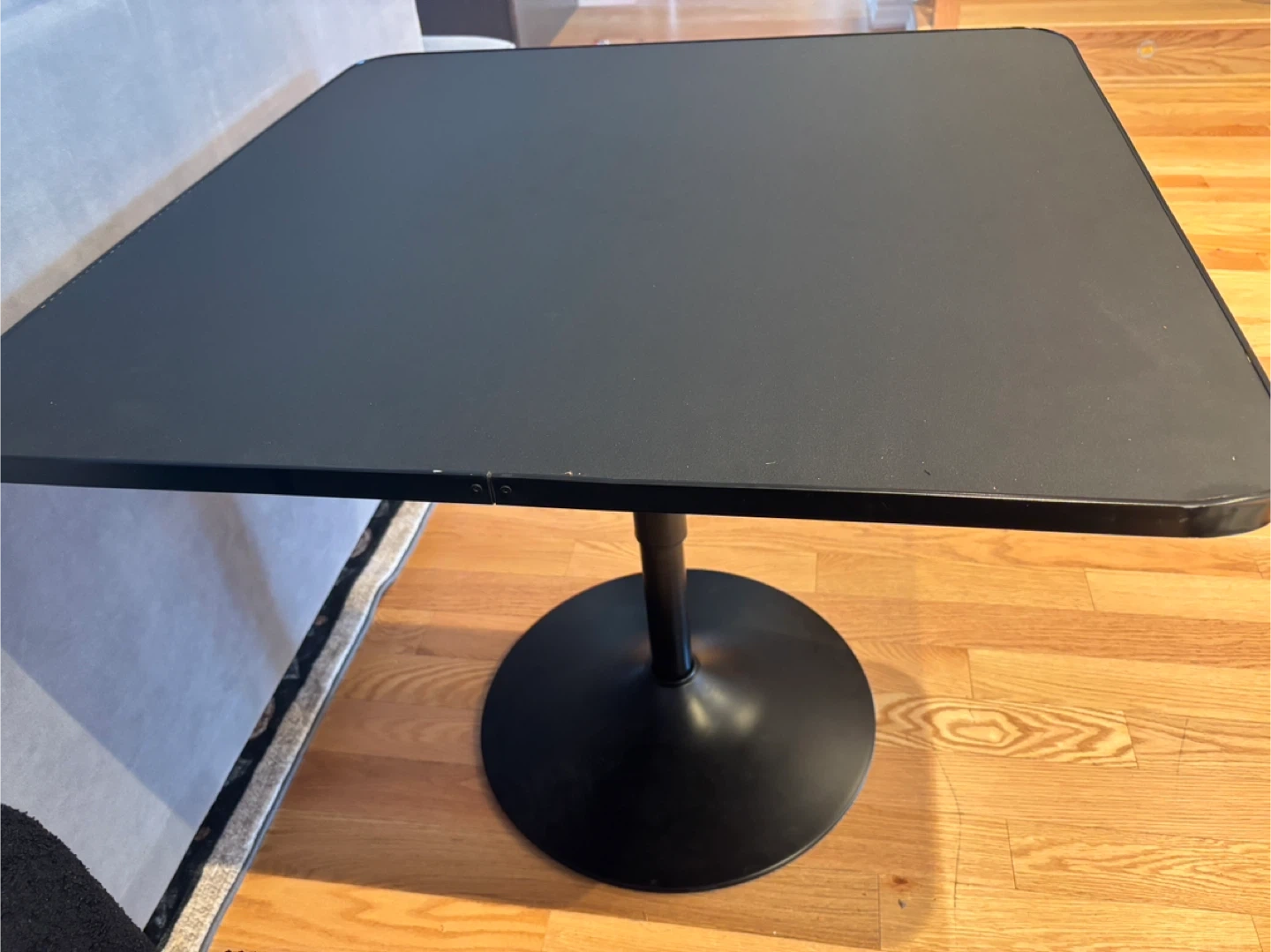 202Selling a square table in black. It measures approximately 32 inches by 32 inches. Perfect as a coffee table or side table! Available for pickup and delivery . 3mins from Delpark home center Oshawa