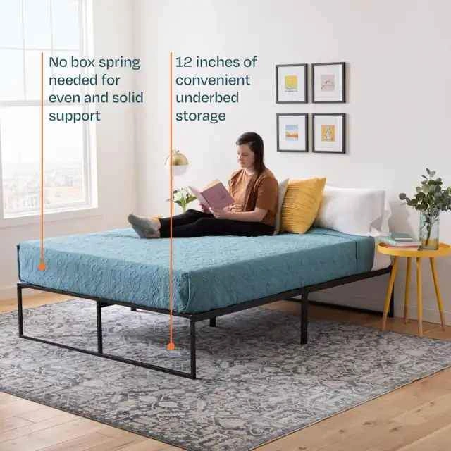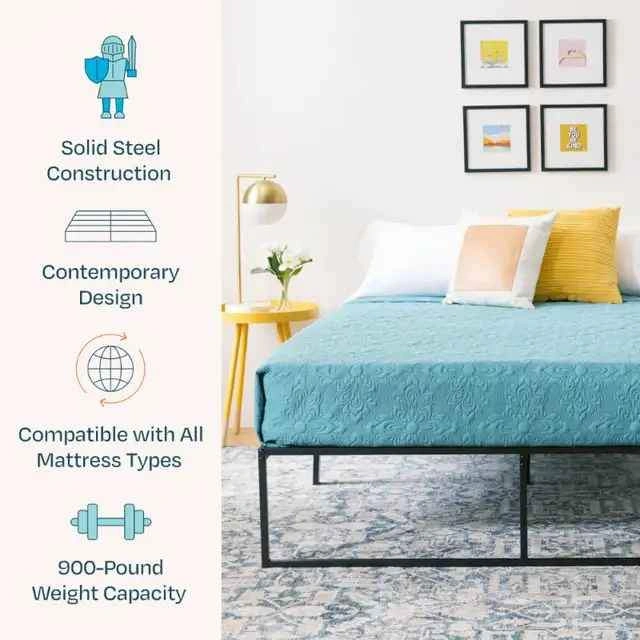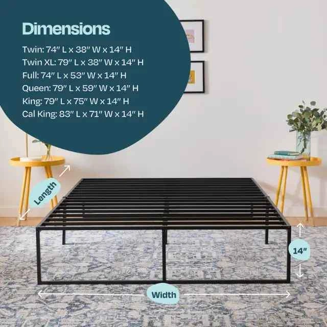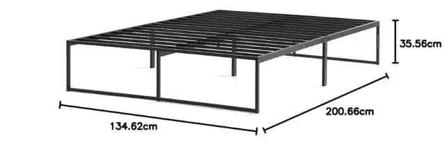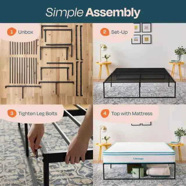 Brand New bed frame. Comes unassembled in original box with all manufacturer parts, hardware, and tools for easy assembly. Retails at Amazon for $175 ($155 + tax). Save your money. * Only the bed frame for sale. Mattress not included and sold separately. Product details: Size: Queen Brand: Linenspa Model#: LS14QQBKPF Material: Metal Product Dimensions: 2.01L x 1.35W x 0.36H Meters Style: Contemporary Special feature: Lightweight Colour: Black GOODBYE BOX SPRING: Sturdy steel support braces, anti-slip treads, and a surface grid design elevate this platform bed frame with exceptional stability built to hold up to 750 pounds. Compatible with most mattresses. ULTIMATE CONVENIENCE: Get the support of a traditional bed frame with the convenience of a portable bed. Lightweight but sturdy, this foldable bed frame packs up easily while supporting you in your sleep—giving you the best of both worlds EXTRA STORAGE: With 13 inches of clearance, this platform bed frame with storage offers plenty of under bed storage to help you keep your sleep spaces neat and organized—making it the perfect option for kids rooms, guest rooms, or smaller spaces. EASY ASSEMBLY: Gone are the days of frustrating furniture assembly! When it comes to this metal bed frame, assembly can be done in less than 5 minutes—simply unfold the base and hand tighten the leg support bolts