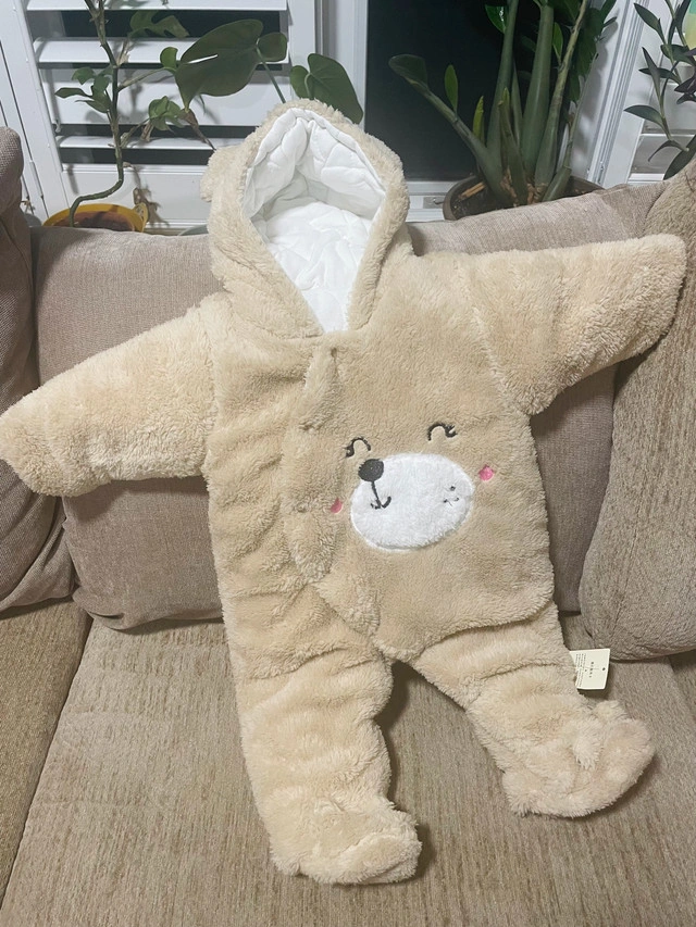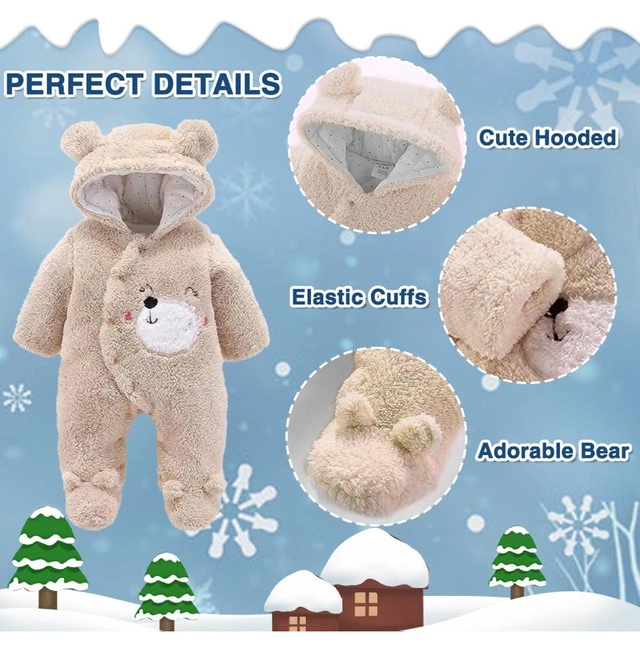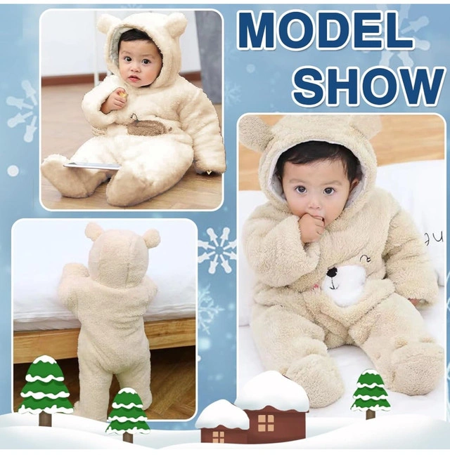 Newborn Baby Snowsuit Winter Coat Warm Bear Footie Romper Fleece Jumpsuit for Infant Girls Boys Brand new with tag. About this item Warm Material -- Baby cartoon bear snowsuit made of cotton inside fabric, coral fleece outer fabric. The triple lock temperature design, keep warm for fall and winter. The winter coat is comfortable and warm to wear for baby. Unique Design -- The footie romper fleece baby jumpsuit with cute 3D cartoon bear face and ears design, will make baby look super adorable. The one-piece suit design makes it easy to wear. The snap crotch design is easy to change diapers. A variety of colors for you to choose. Powerful Warmth -- The newborn winter hoodie jumpsuit design, keeps the baby' s head and ears warm when outing. Snaps design, easy for dressing, keep baby away from cold wind. Size -- Great for newborn infant baby girls boys within 0-3 months, 3-6 months, 6-9 months, 9-12 months. Please refer to the size chart for detailed. Easy To Care -- This snowsuit is machine washable, dry at low heat. You can gently shake the clothes ron the creases, the coat will naturally puffer. *Pickup Locations: Markham Road & 14th Avenue, Markham, or 500 Esna Park Dr, Markham. *Thank you for your interest in these items. Please also have a look at my other items on sale.