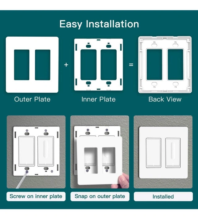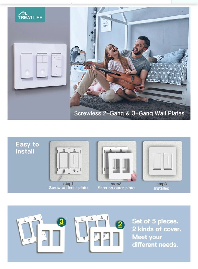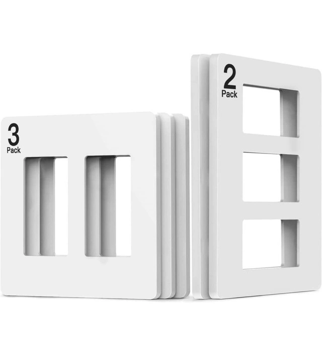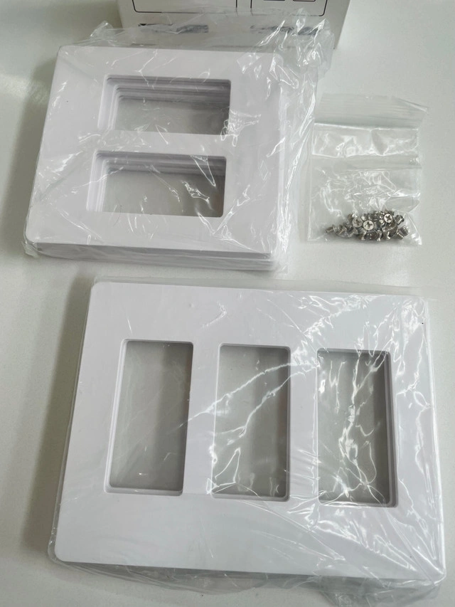 TREATLIFE screwless decorator wall plates, standard size, white, 5 pack (3 x 2-gang, 2 x 3-gang). - 2-gang & 3-gang standard size, matte white. - Unbreakable polycarbonate thermoplastic material. - Smooth finish with curved edges, easy to clean. - Screwless cover for added child safety. Quantity: 2 Pickup near Markham Road & 14th Avenue, or 330 Esna Park Dr, Markham. Please also have a look at my other items on sale.