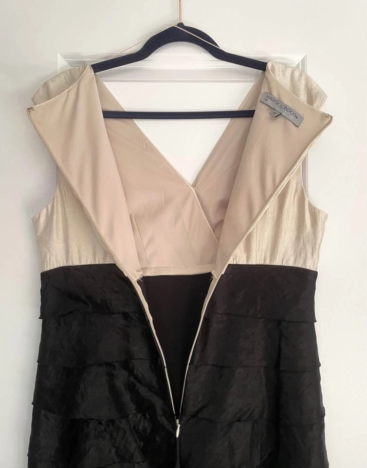 Melanie Lynn Black / Cream Ruffled Sheath Dress Ladies Size 12