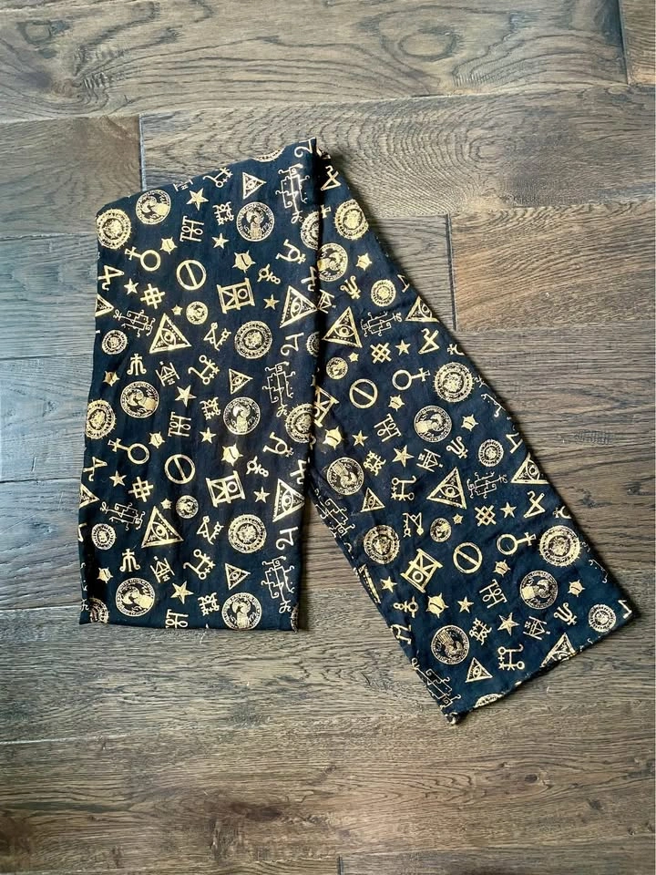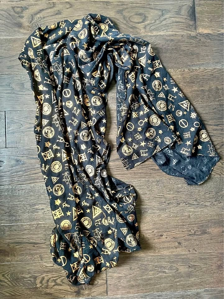 Fantastic Beasts Harry Potter gold foil viscose scarf, Loot Crate exclusive.