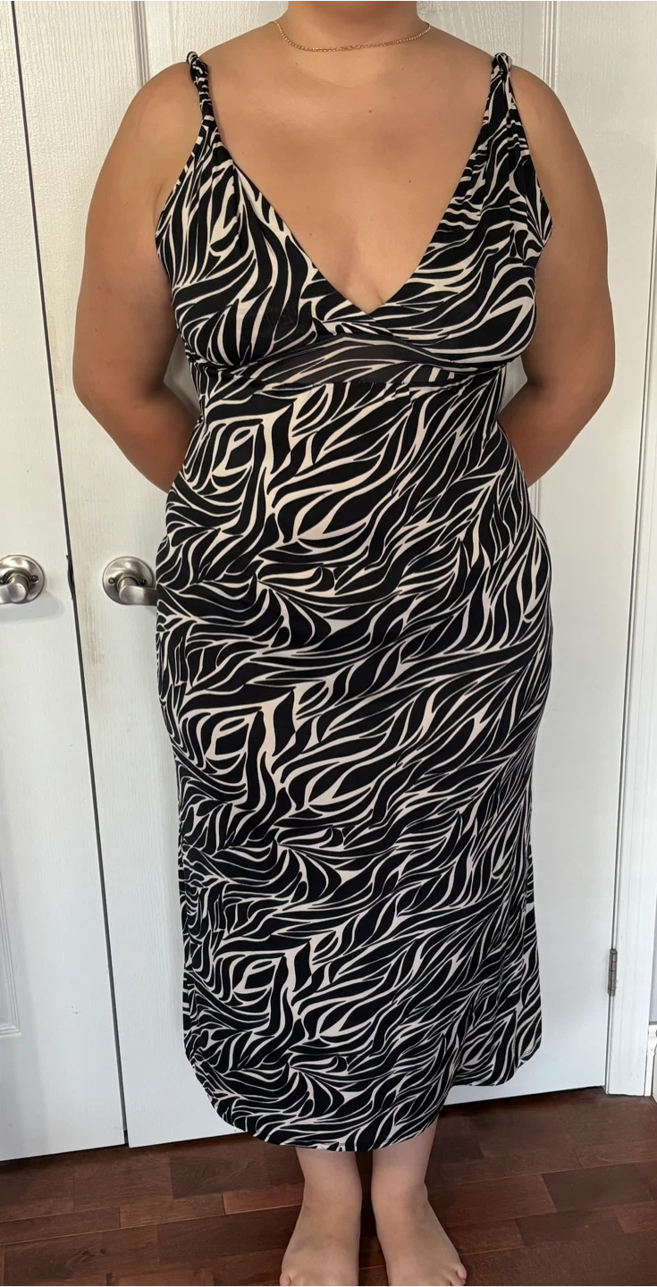 Stylish zebra print maxi dress in excellent condition! Made with 94% polyester and 6% spandex. Size is XL (X-Grande). Hand wash in cold water, hang to dry, and no bleach