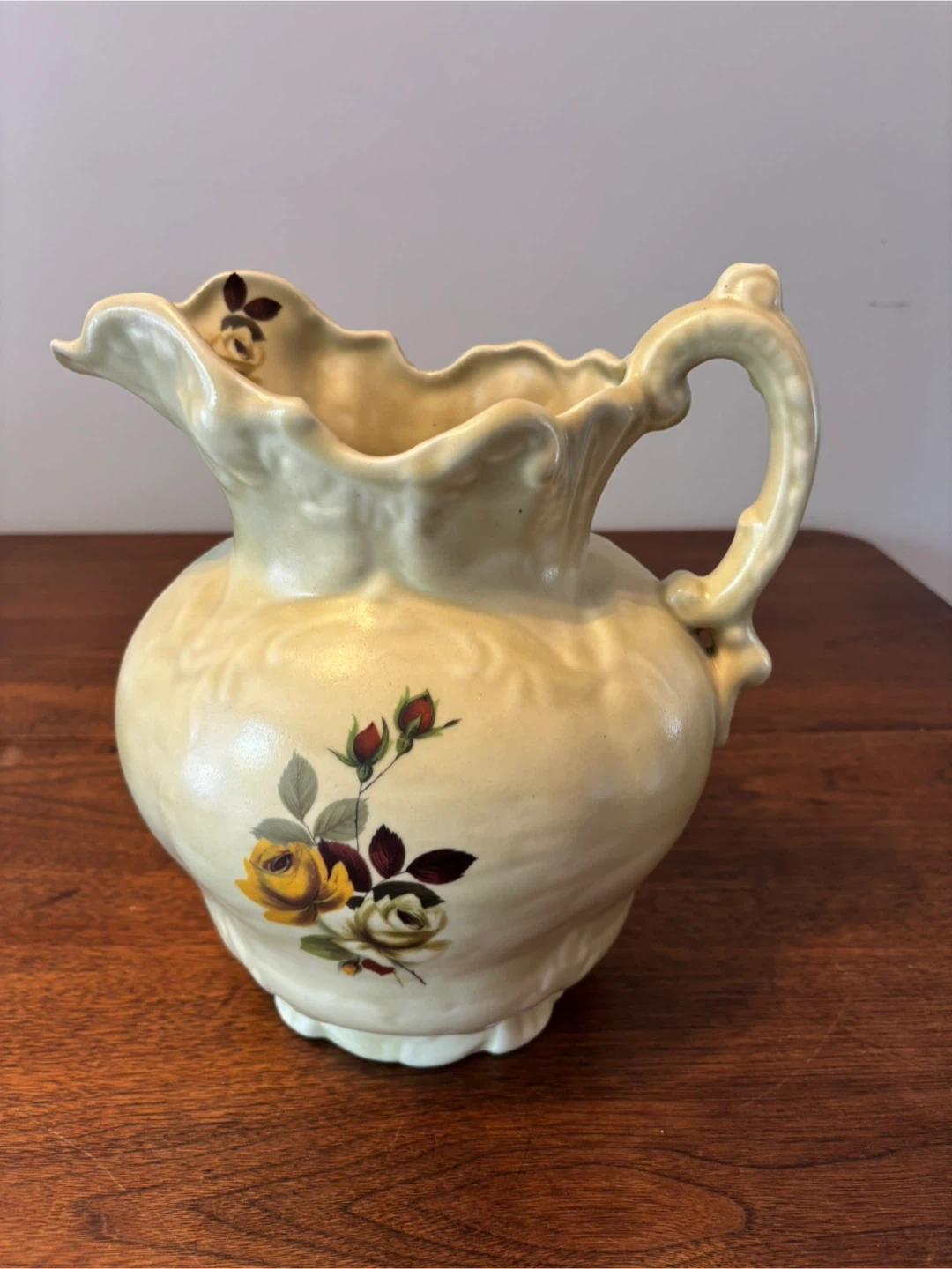 Selling a lovely vintage cream pitcher. It features a beautiful floral design with yellow and white roses. It's in great condition and would be a charming addition to any collection or table setting. 10.5” tall. Cash only.
