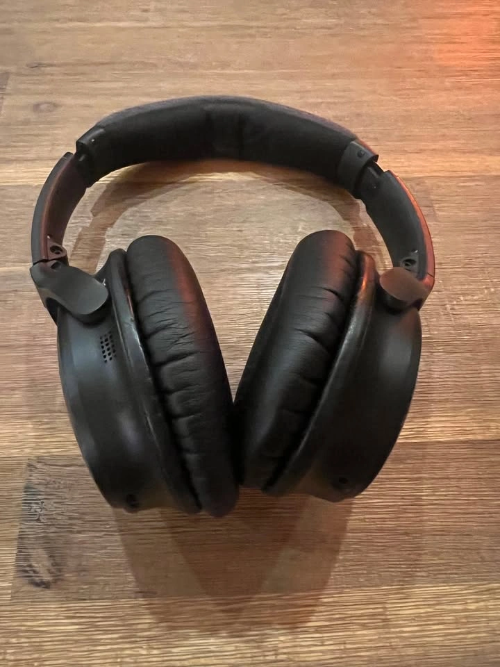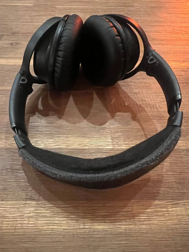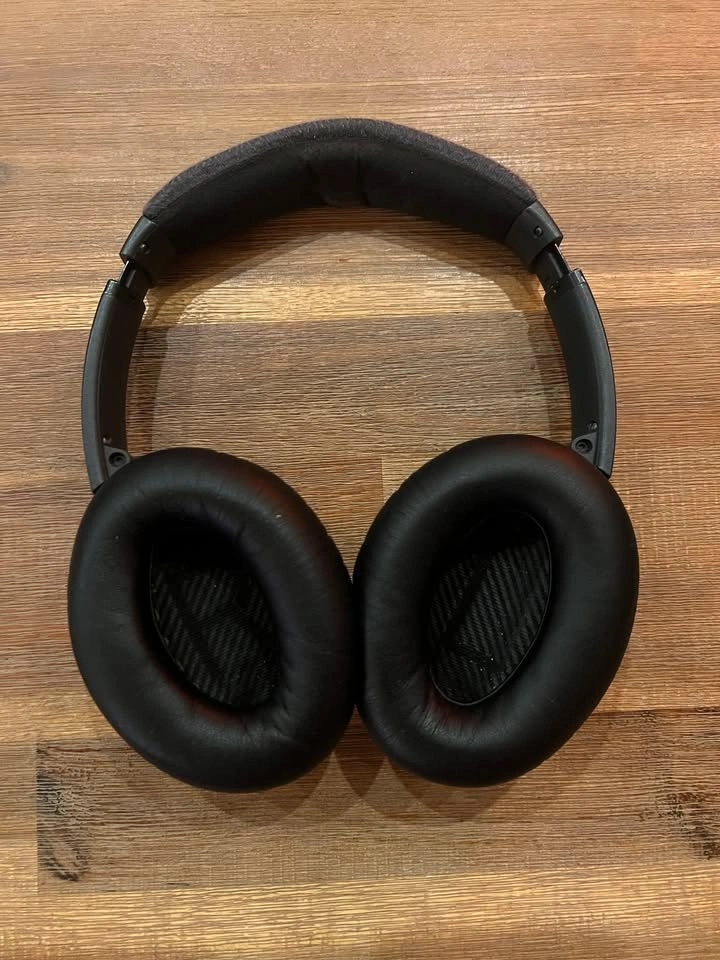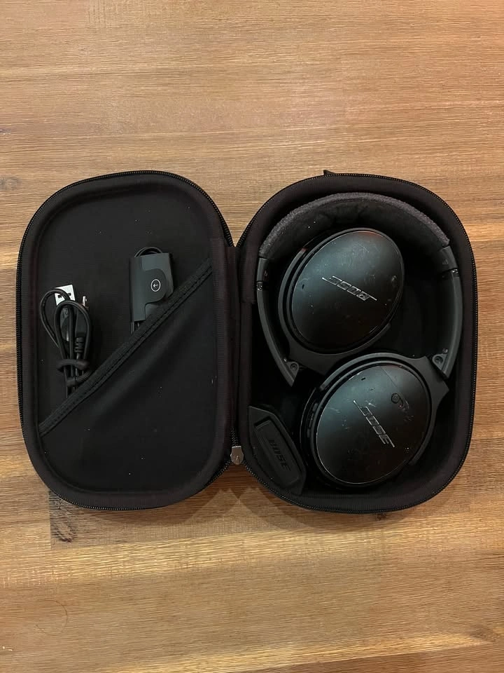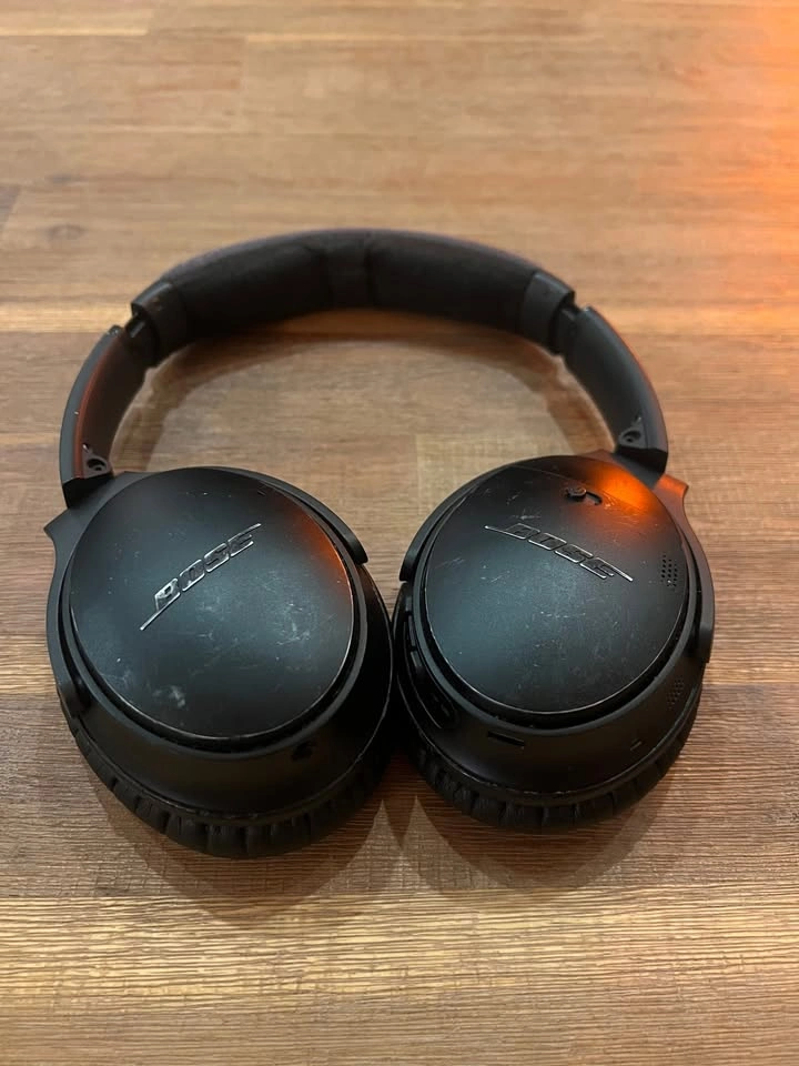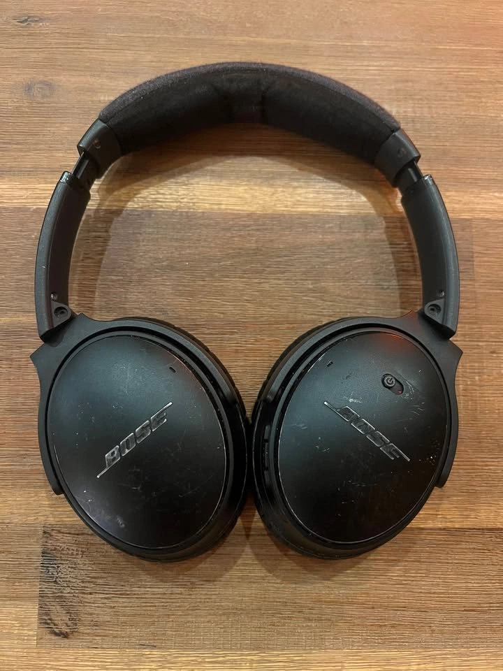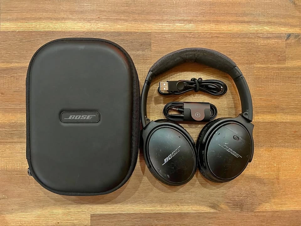 Bose QuietComfort (QC35). Headphones sounds great, dynamic audio, crisp highs, powerful lows, not that different than the $300 new generation pair I recently bought. They work perfectly: ANC, Bluetooth, and battery are solid. Cosmetically used with light scratches from normal wear. Fresh earpads just installed. Includes new case, new 3.5 mm cable, and charge cable. Clean, tested, ready to use. Condition: fully functional; 20+ hrs per charge, see photos for cosmetic wear.
