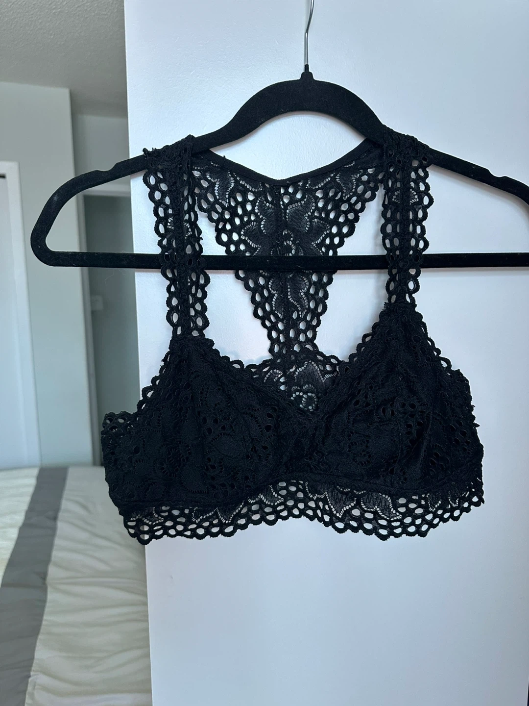 Selling a cute Aerie black lace bralette! It's in great condition and has a lovely lace design. Perfect for adding a touch of elegance to your wardrobe