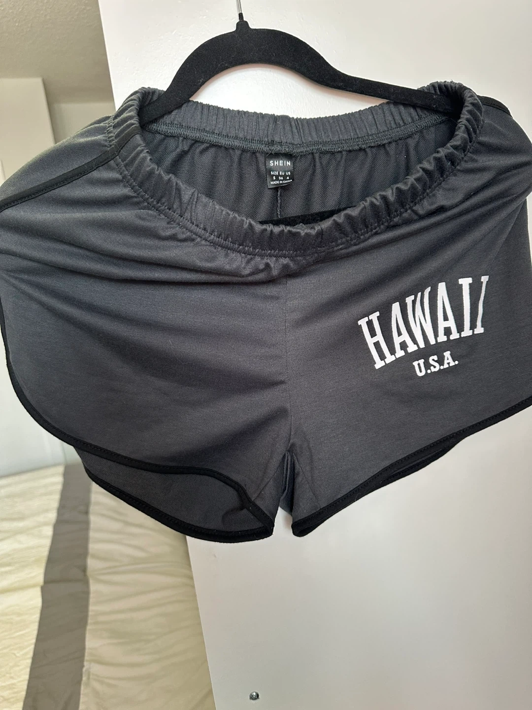 Selling a pair of Shein shorts with a "Hawaii U.S.A." design. They are a size large and in great condition! Perfect for lounging or casual wear