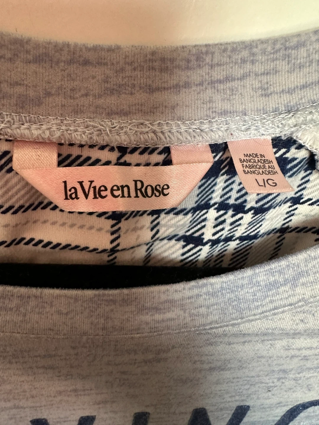 Cozy La Vie en Rose long-sleeve top in a size large. It has a cute design and is super comfy for lounging around the house or wearing out and about Pay by cash please