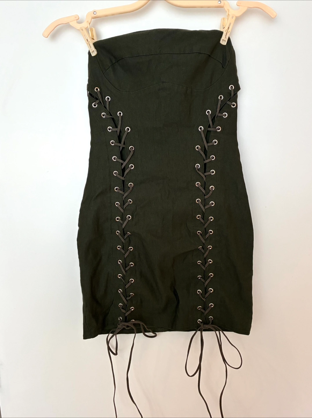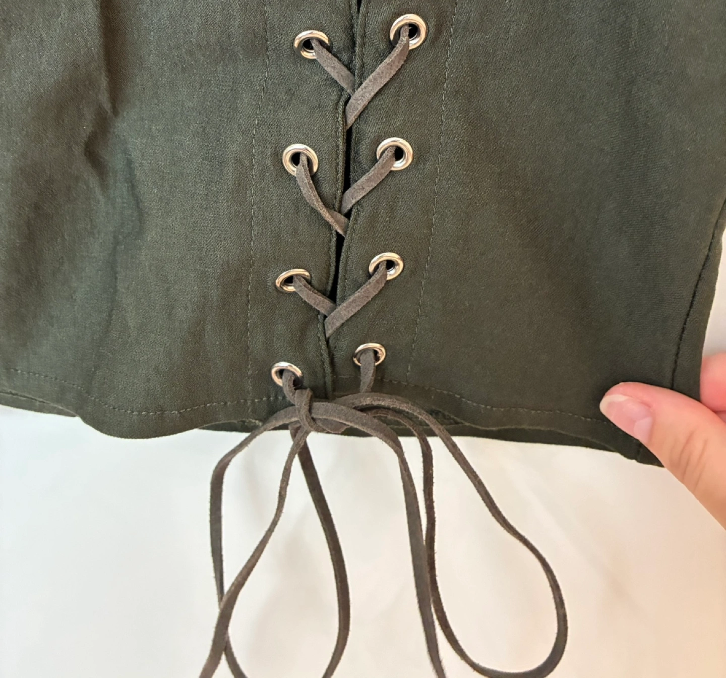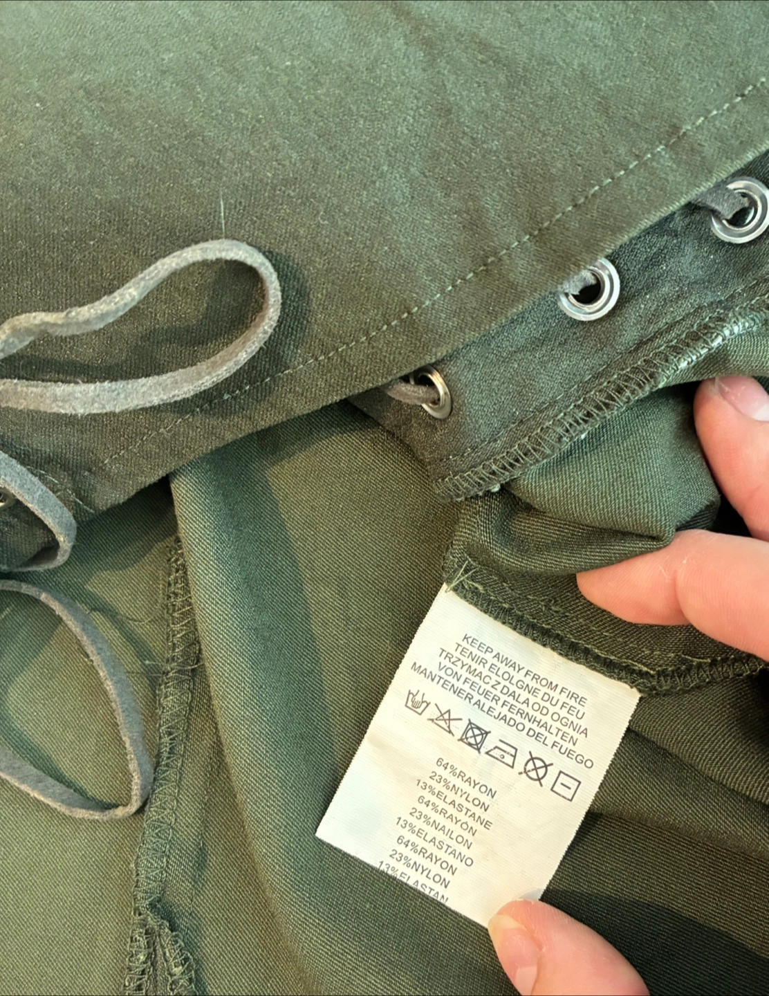 Worn twice, in great condition. Material is stretchy. Laces are adjustable. It’s a size large but it fits more like a size small or medium. I’m a size medium and it’s a bit too short on me.