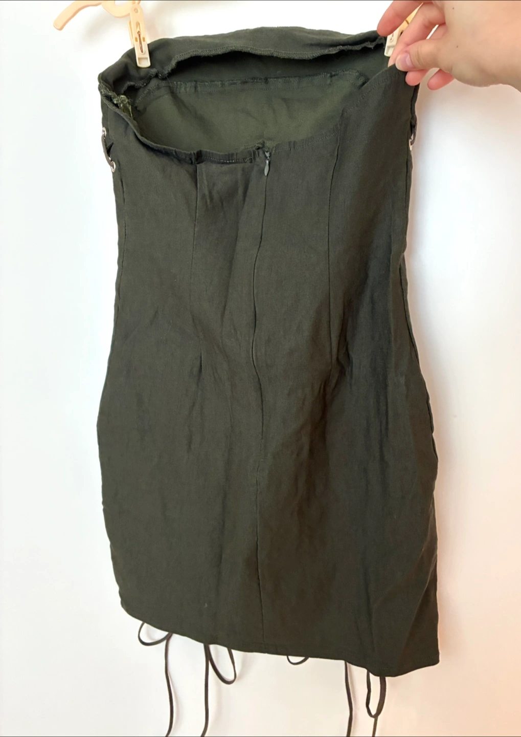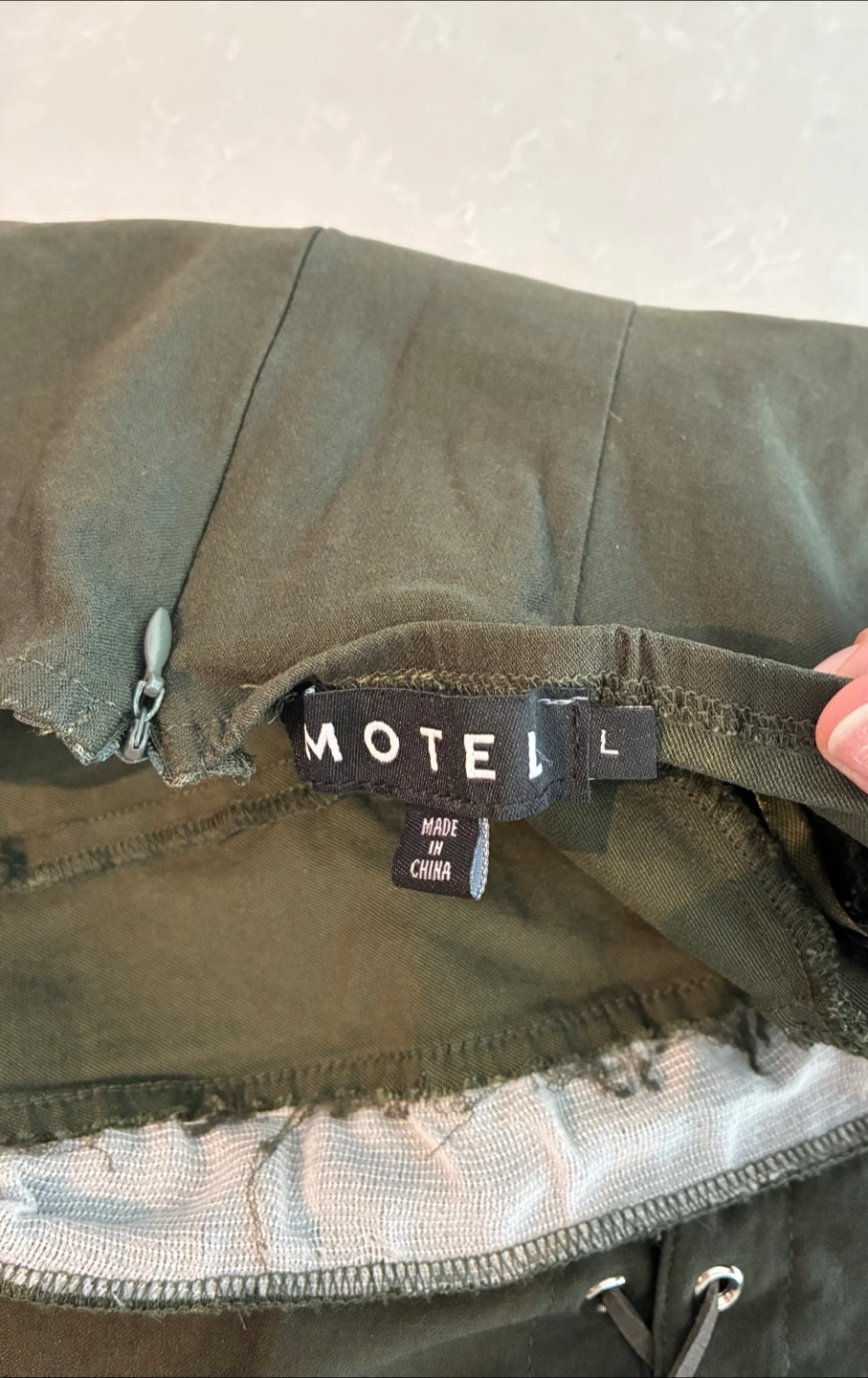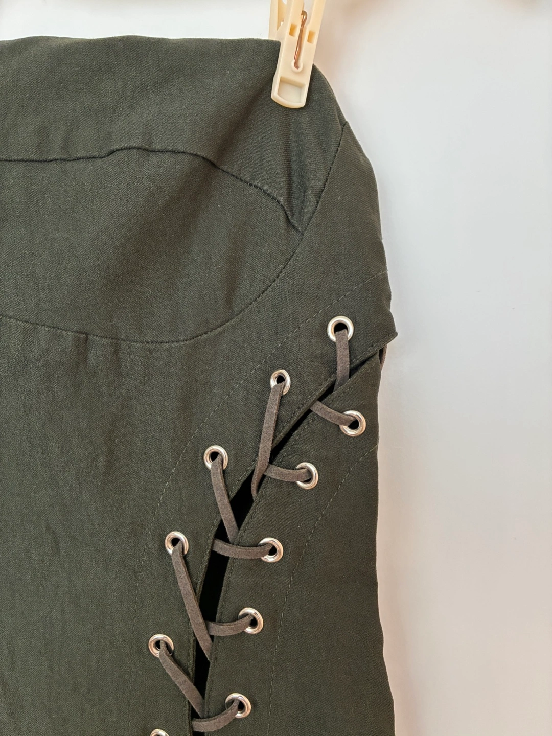 Worn twice, in great condition. Material is stretchy. Laces are adjustable. It’s a size large but it fits more like a size small or medium. I’m a size medium and it’s a bit too short on me.