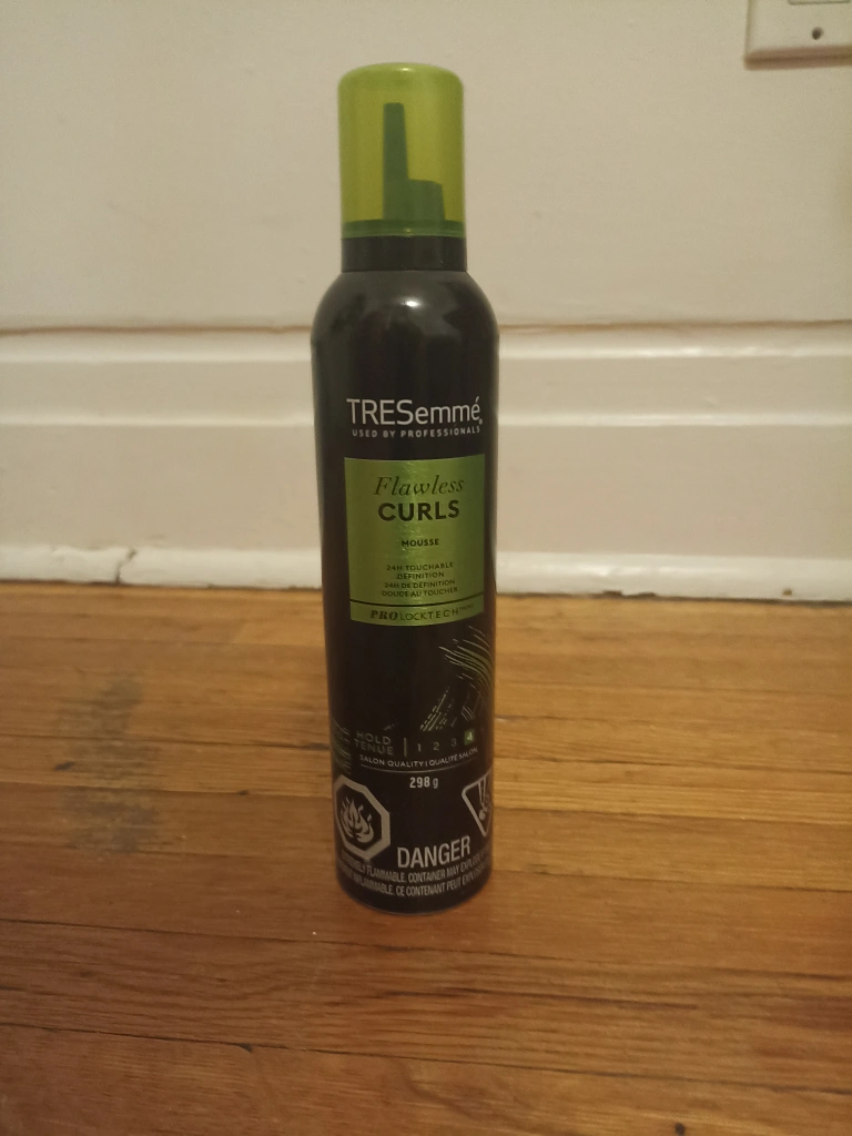 Free TRESemmé Flawless Curls mousse! It's designed to provide touchable definition for your curls and offers 24-hour hold. The can contains 298g of product.