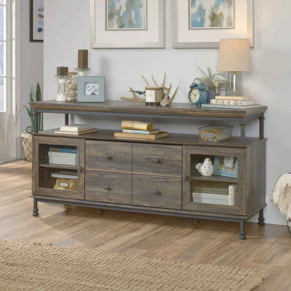 Brand new Sauder 426502 Canal Street Entertainment Credenza TV Stand. It comes unassembled in the original sealed, never-opened box with all manufacturer parts, hardware, and instructions. Retails at Canadian Tire for $780 ($690 + tax). Save your money. Sauder Canal Street Built-in USB Port 60 Inch Wide Entertainment Credenza TV Stand with Storage, Carbon Oak Sauder Canal Street Built-in USB Port Entertainment Credenza with Storage accommodates up to a 65" TV weighing 70 lb or less. Features: - Large shelf with built-in USB ports - Framed doors feature safety-tempered glass with beveled edges - Adjustable shelf behind each door - Vanishing Drawer - Drawers feature full extension slides - Decorative, powder coated metal frame - Carbon Oak finish - Package Dimensions: 65.7" W x 21" D x 8.1" H - Package Weight: 140.82 lb - Product Dimensions: 60" W x 18" D x 30" H - Assembled Weight: 135.4 lb - Maximum Weight Capacity: 70 lb Pickup from south London.
