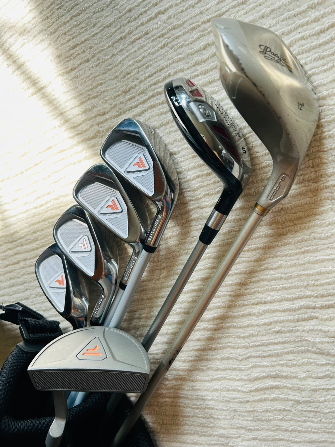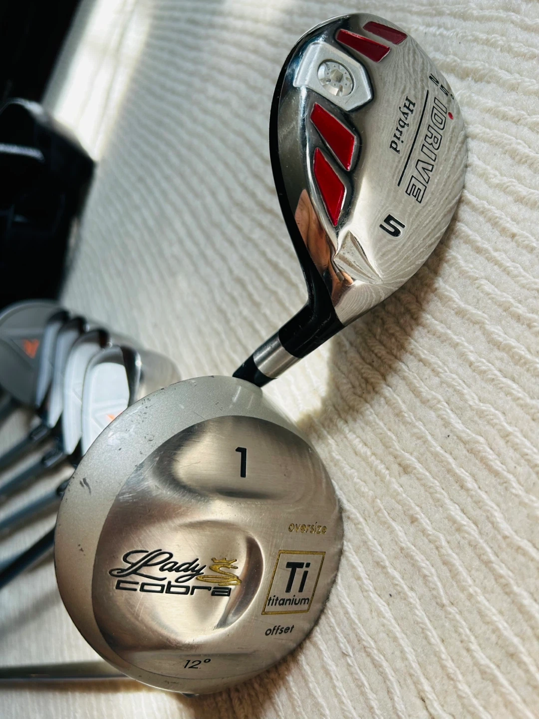 Driver: King Cobra Oversize Titanium Head, Graphite Shaft with Stabilizing Tip, Lady Flex.