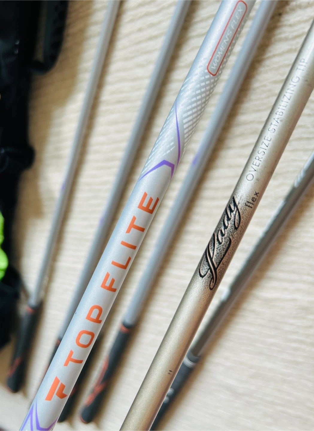 Irons: 6,7,8,9, Top Flite Graphite Shaft, Women Flex.