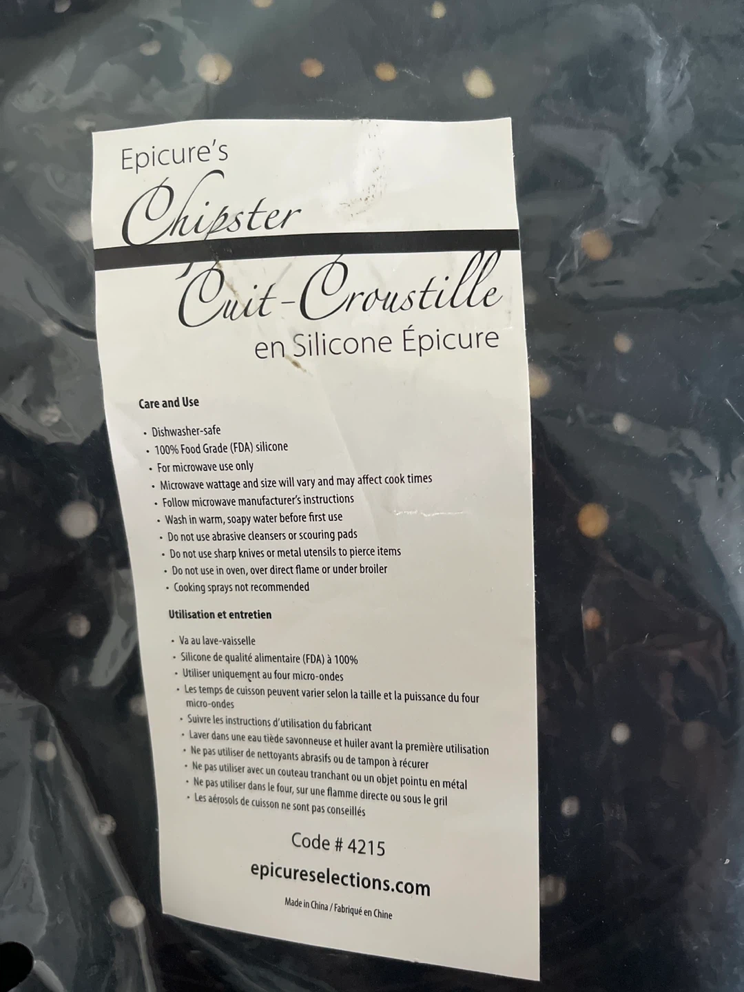 Get ready to make some crunchy and healthy chips fast with this Epicure Chipster! It's dishwasher-safe and made from 100% food-grade silicone. It's for microwave use only, so you can whip up a quick snack anytime - still in bag.