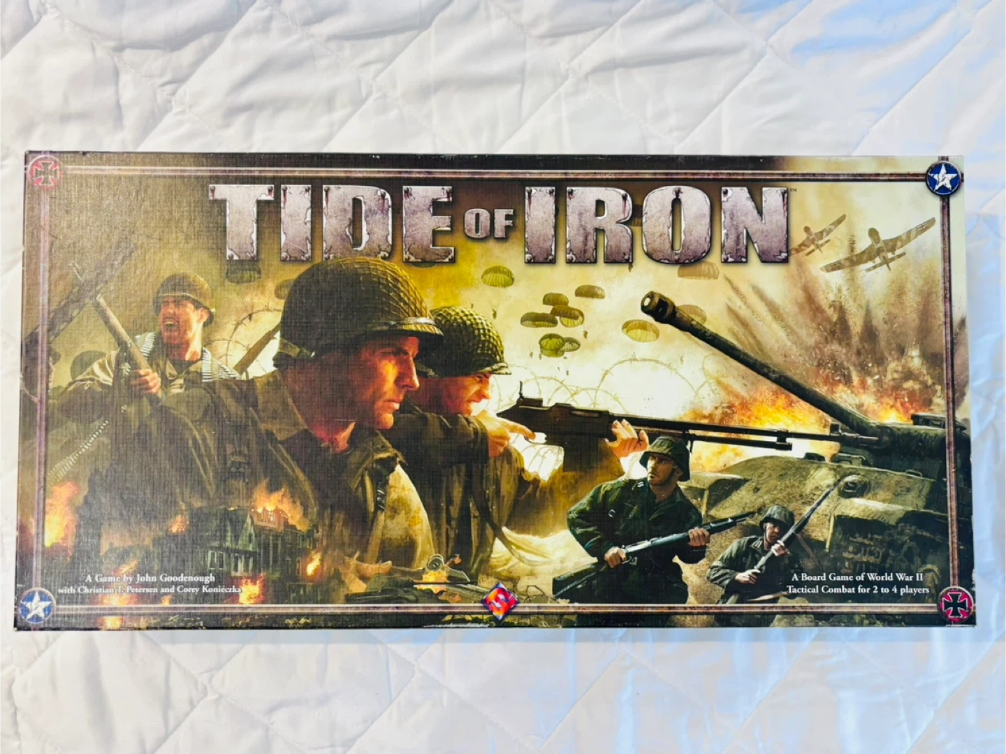 Selling a complete Tide of Iron board game! It's a World War II tactical combat game for 2 to 4 players. Includes all the pieces and components shown in the pictures. Perfect for strategy game enthusiasts!