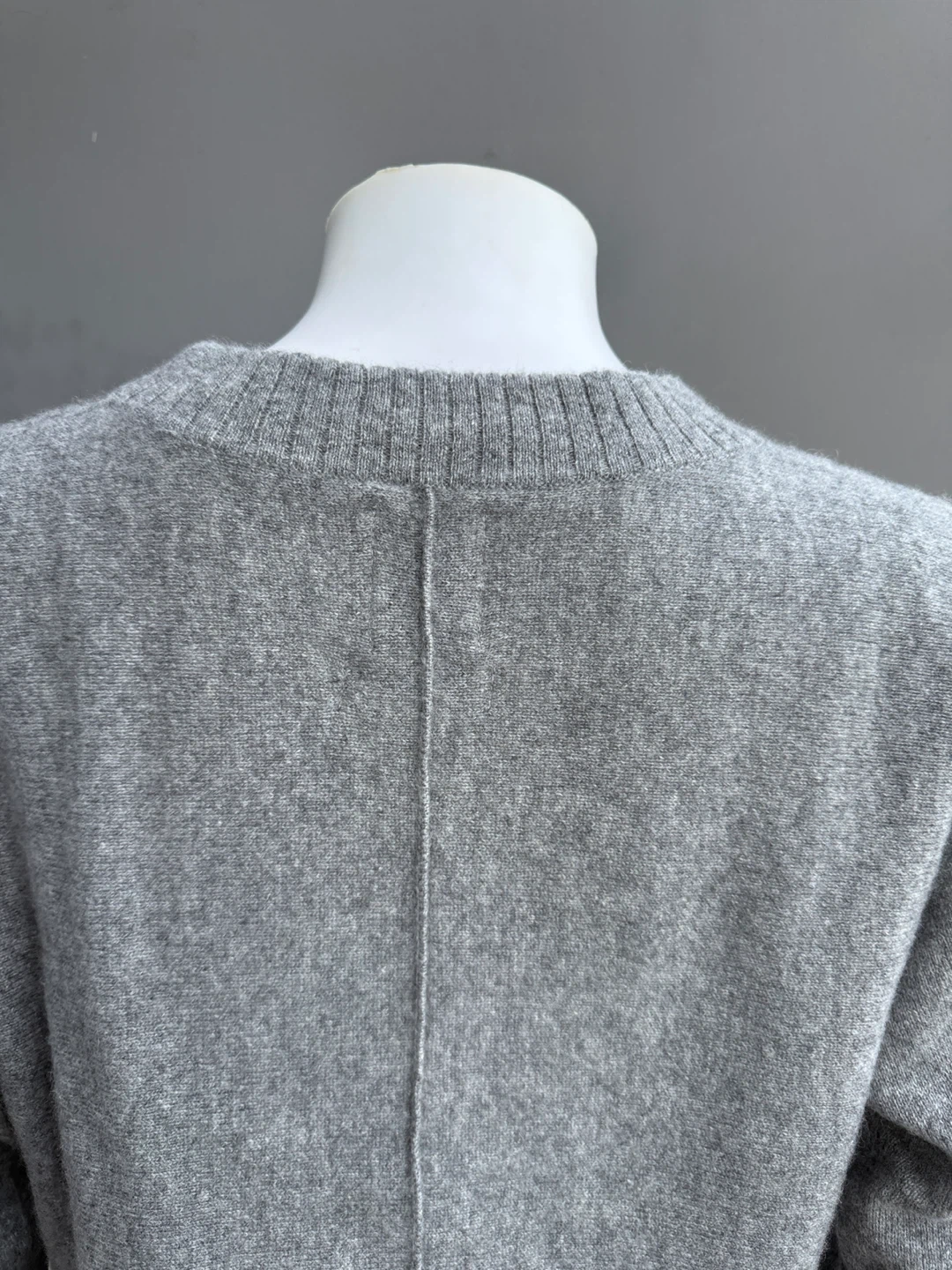 A lovely grey cashmere sweater! It's in great condition and super soft. Perfect for layering or wearing on its own. It's a comfy and stylish piece for any wardrobe