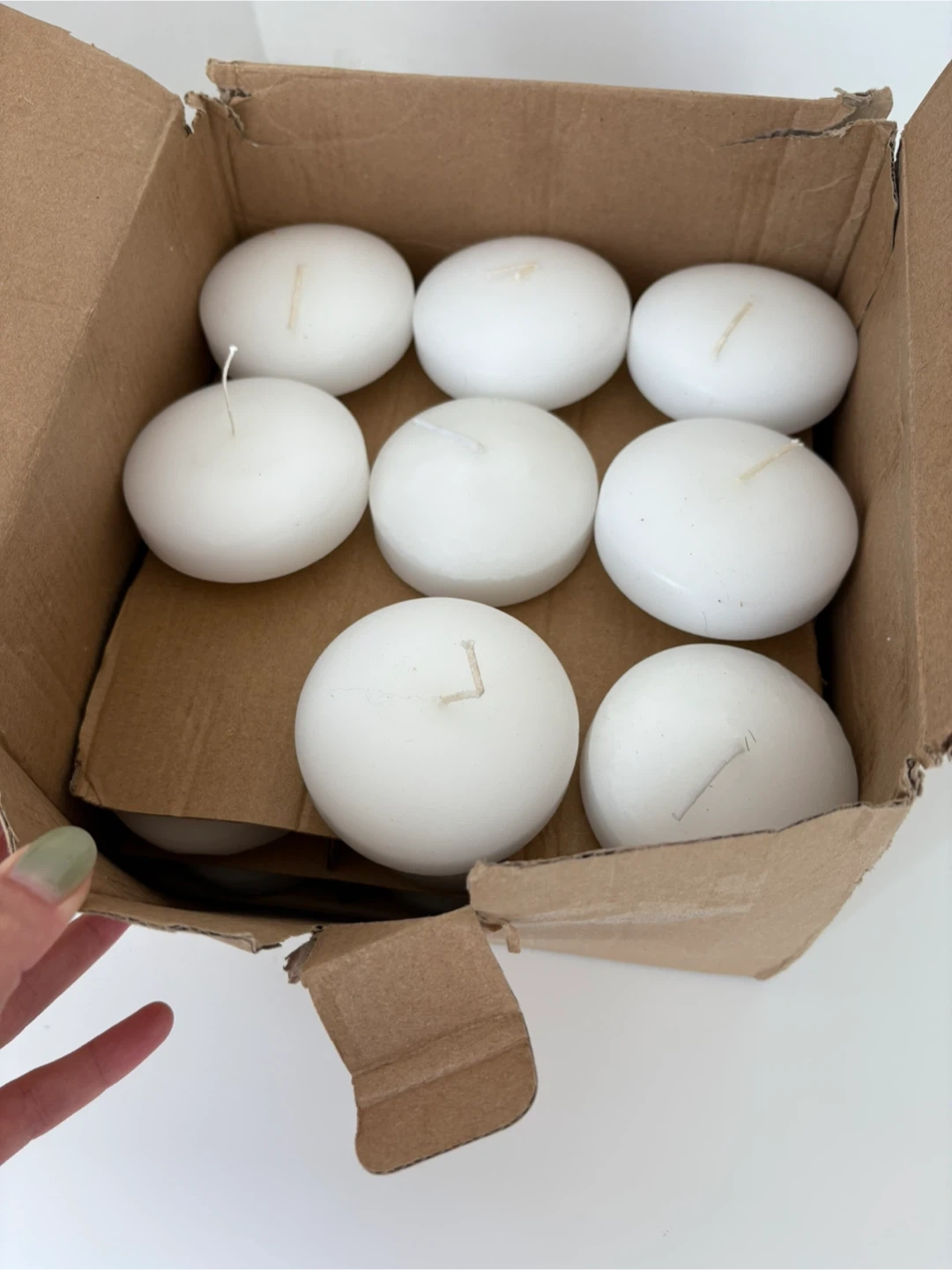 I got some leftover floating candles from my wedding. They are 3 inches in diameter. There are 26 new/unused candles and I can add for free 14 used ones. Bowl is not included, it’s just to give a sense how I used them.