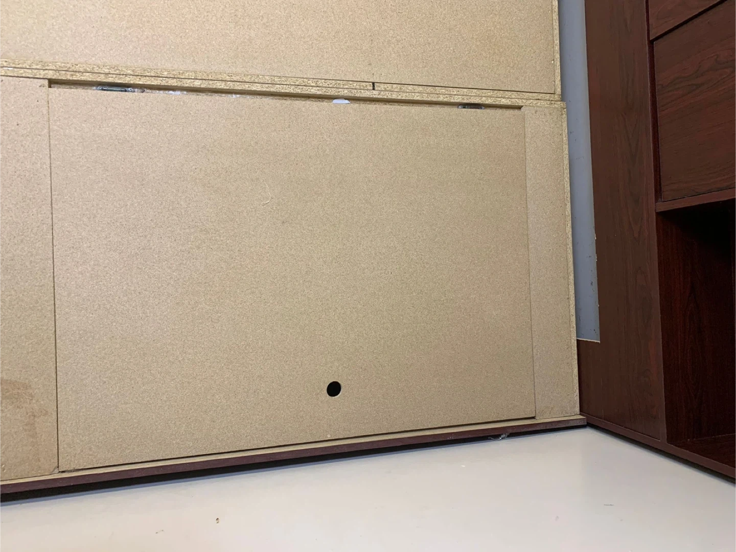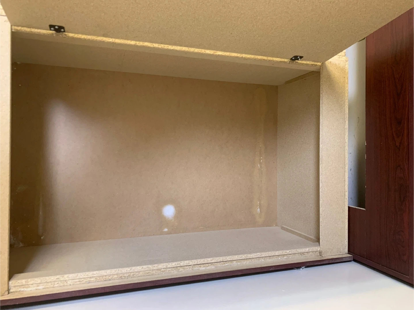 Selling a queen size bed frame with a storage headboard. It's a dark brown colour and has drawers built into the base of the bed for extra storage. The headboard also has shelves and a cabinet. Perfect for maximizing space in a smaller bedroom!