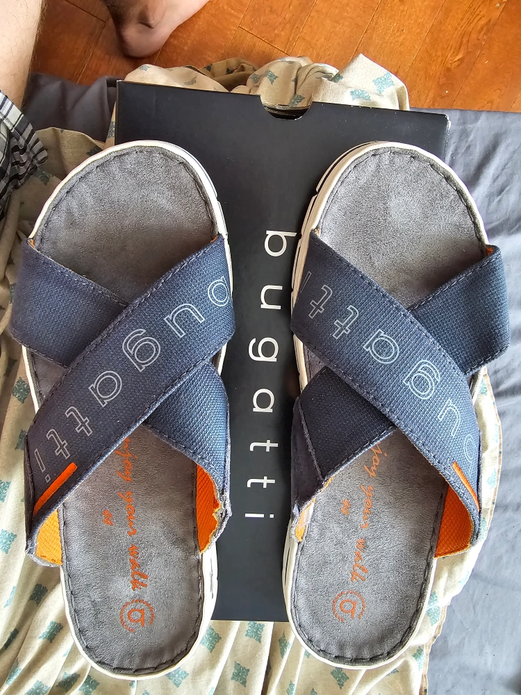 Selling a pair of Bugatti men's sandals with a stylish cross-strap design! These sandals are in great condition and come with their original box. The size is 11