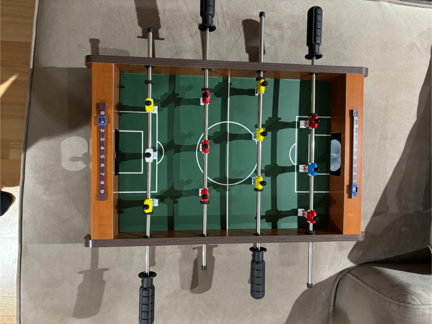 Selling a fun Goplus foosball table! It's a 20-inch mini tabletop soccer table perfect for game rooms. Comes with 2 balls and score keepers. It's a portable football table for some quick fun