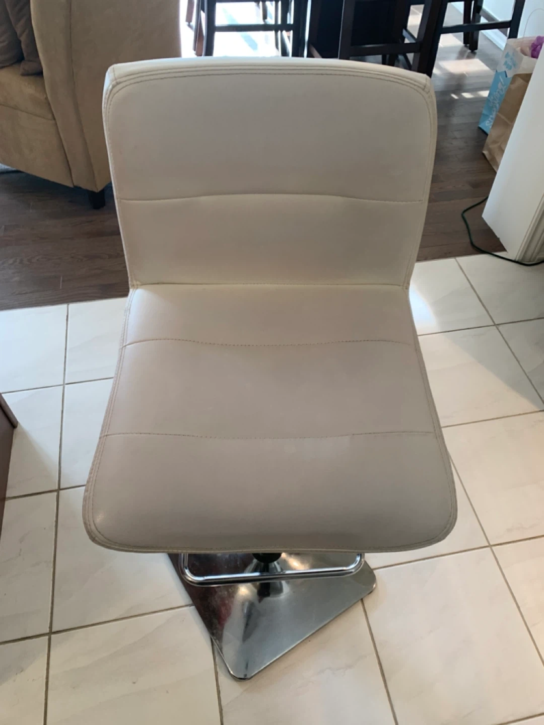 Selling 4 four stylish white swivel bar stool! It's in great condition and would look great in any kitchen or bar area. The seat is comfortable and the swivel function makes it easy to chat with friends or family. The base is a shiny chrome colour