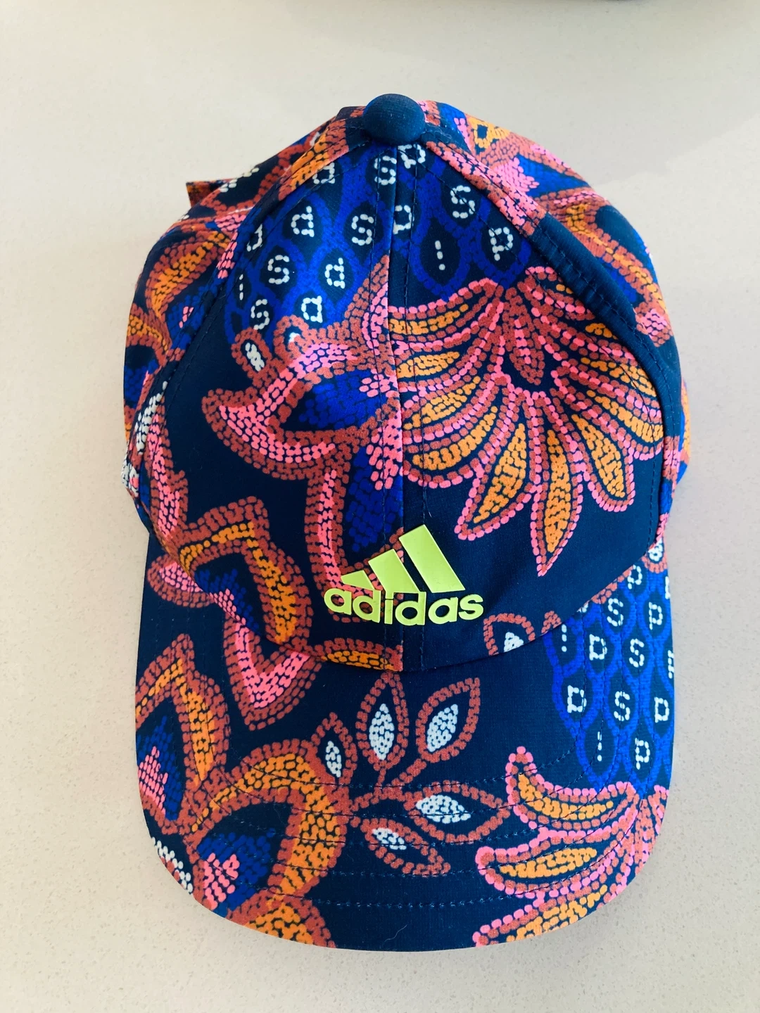 Stylish Adidas AEROREADY cap for women! It features a unique pattern and the Adidas logo. One size fits all. Perfect for adding a pop of colour to your outfit while staying comfortable and cool with AEROREADY technology
