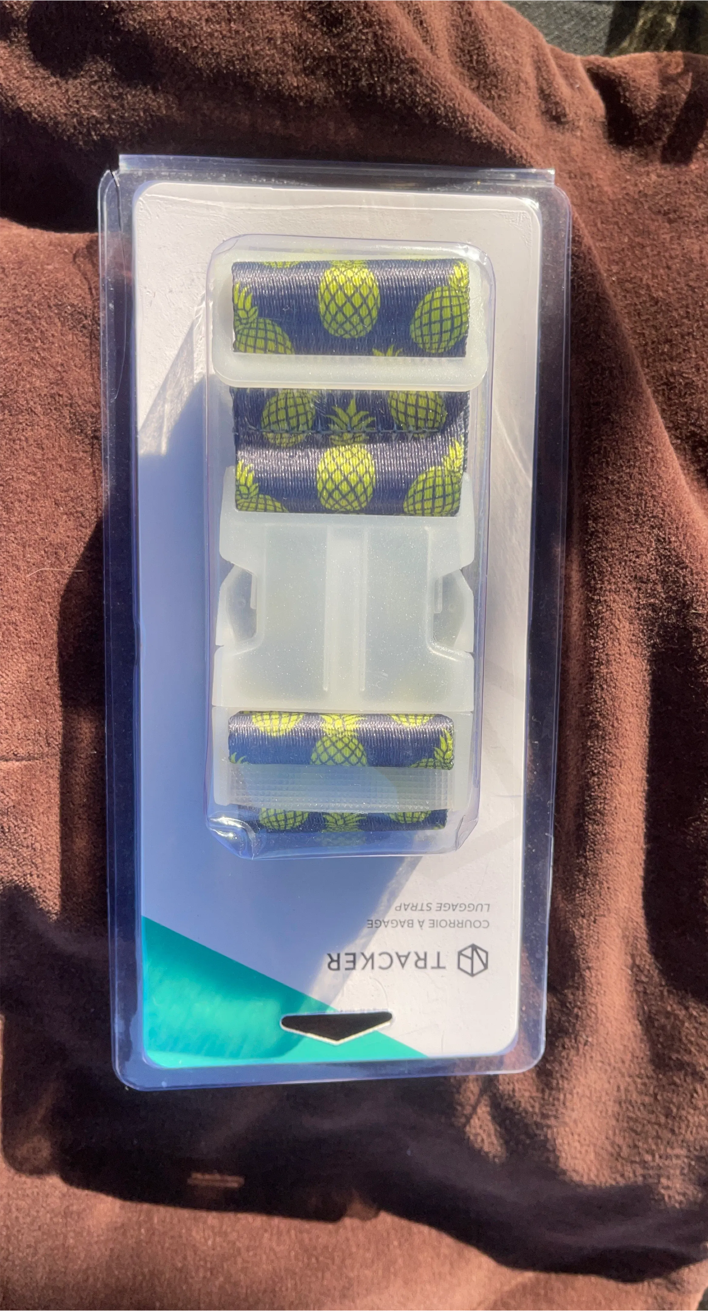 Keep your luggage safe and secure with this Tracker luggage strap! It features a fun pineapple print and is adjustable up to 182 cm (72 inches) in circumference. It's easy to use and durable, ensuring your bags stay closed and secure during travel