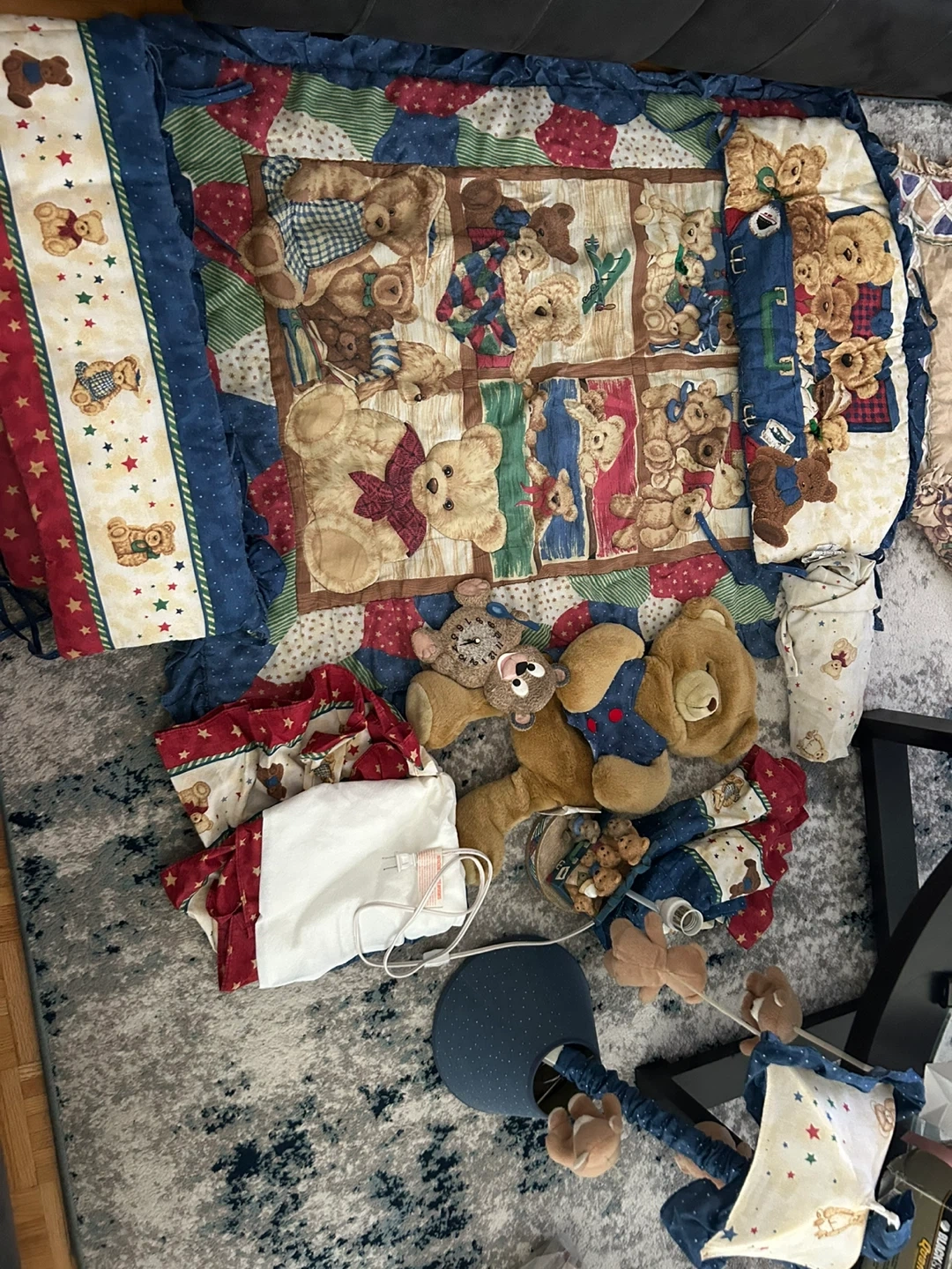 10+ pc Teddy Crib Set & Room Accessories + Free Sheet and Quilt!