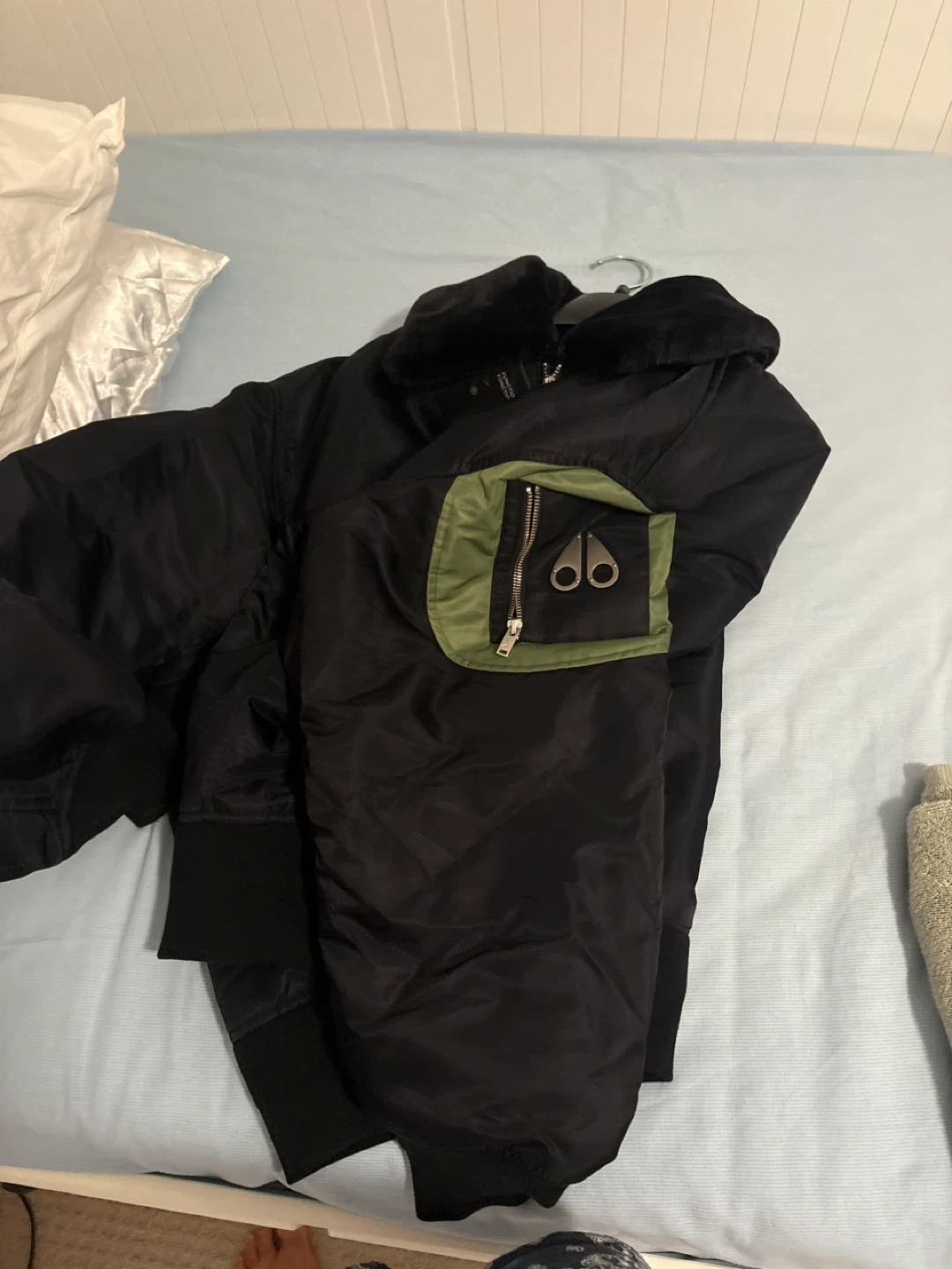 Selling a Moose Knuckles bomber jacket in black! It's in great condition and ready for a new home. The jacket features a stylish design with the iconic Moose Knuckles logo on the sleeve. Perfect for staying warm and fashionable during the colder months!