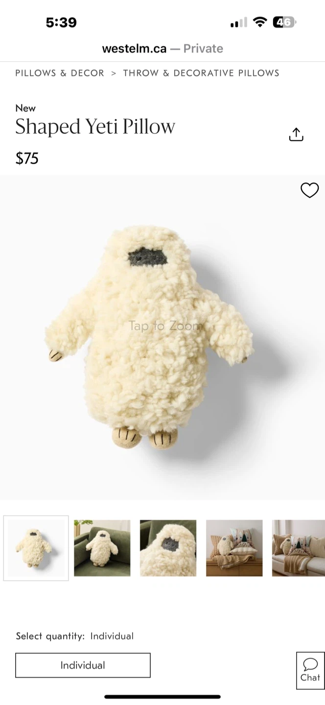 Looking to add a touch of whimsy to your space? I'm selling a West Elm Shaped Yeti Pillow!