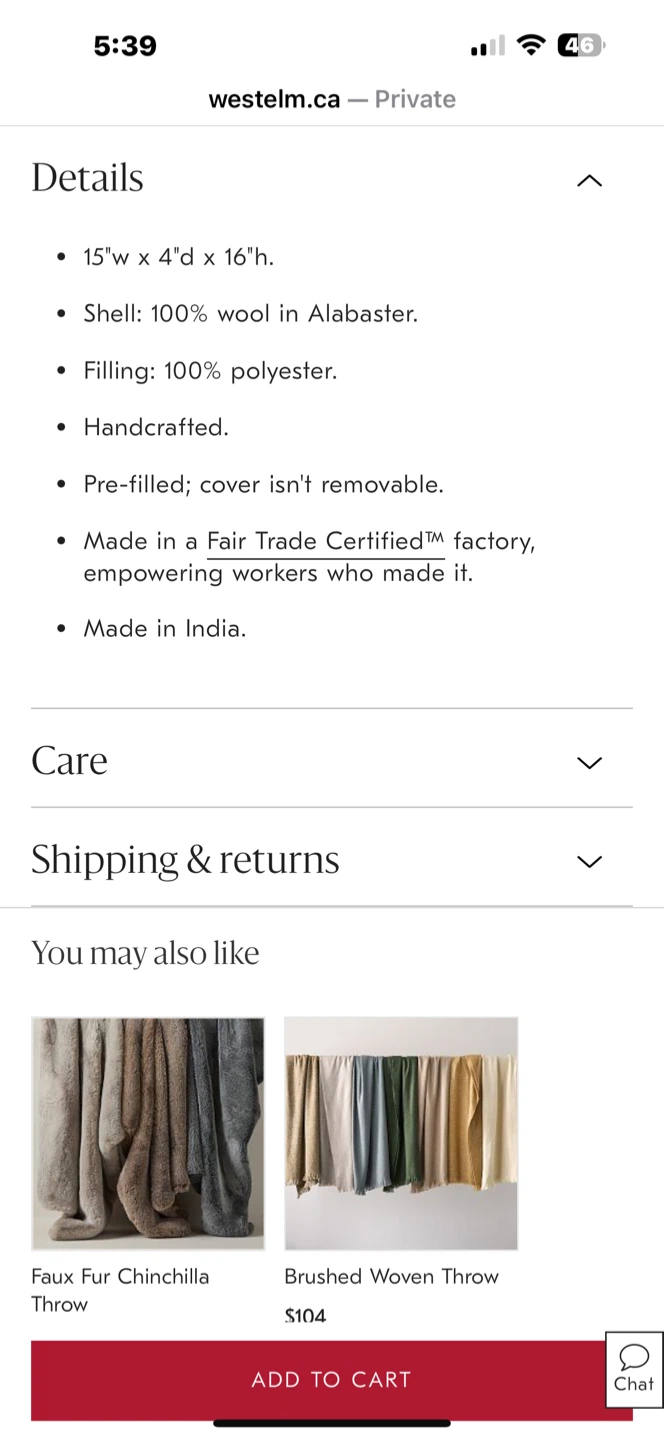 West Elm Shaped Yeti Pillow - Wool Alabaster
