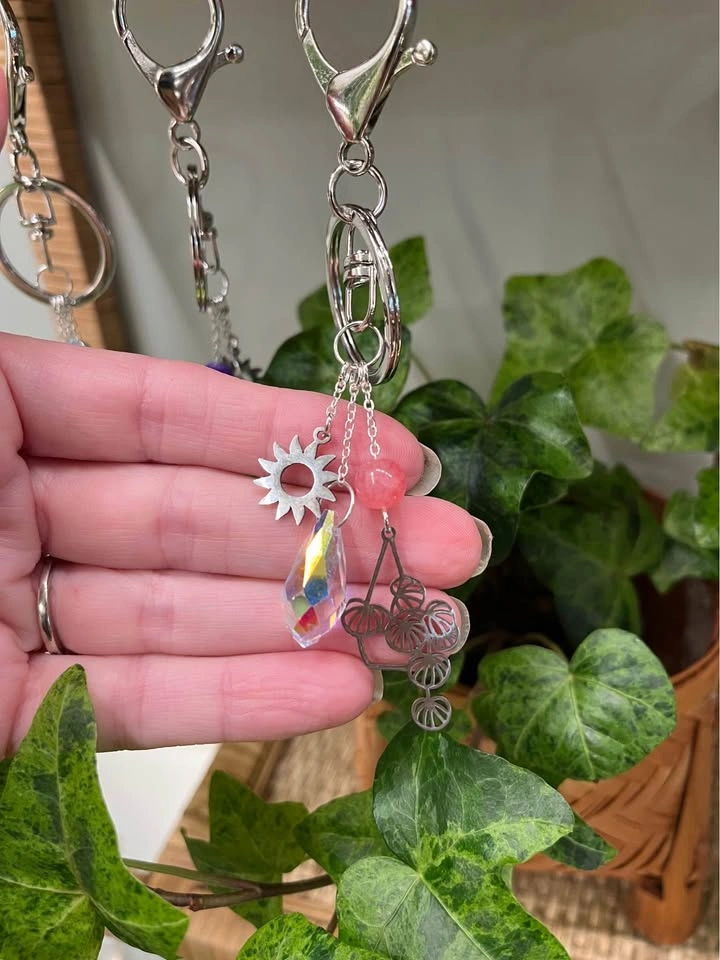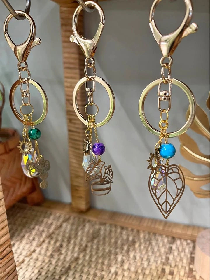 Cute little plant themed purse or bag charms/keychains with different coloured round stone accents. Come in silver or gold and are $5 each.