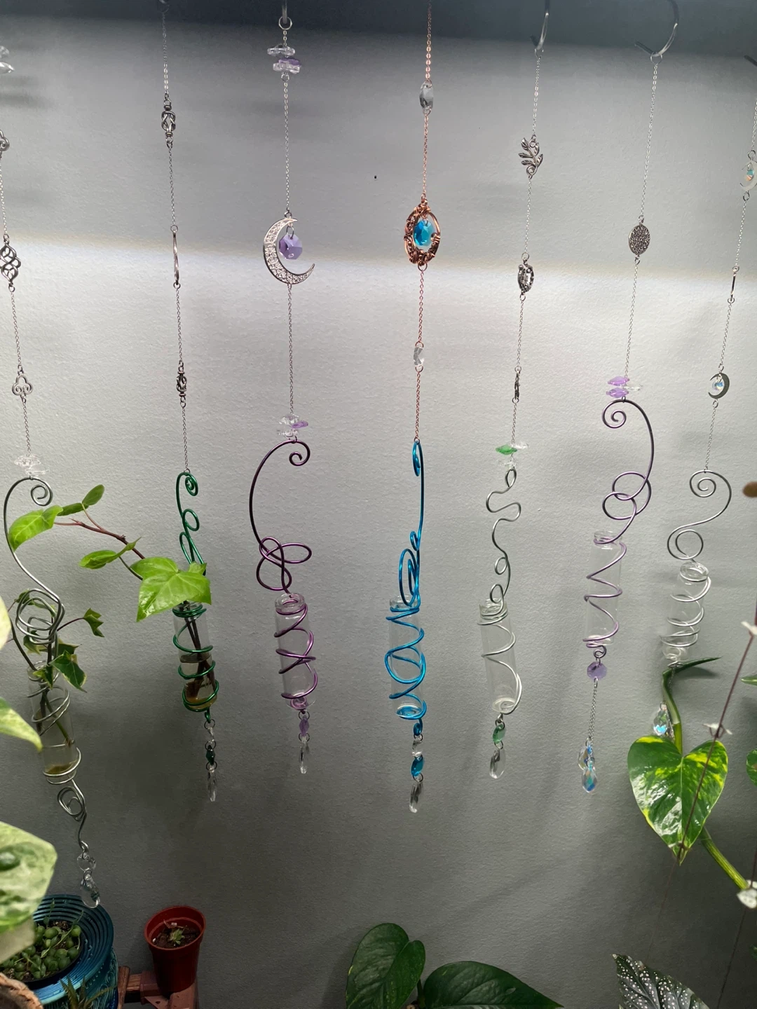 Variety of handmade Suncatcher Propagation Jars available. Each one is unique and features different coloured wire, crystals and charms that can be customized