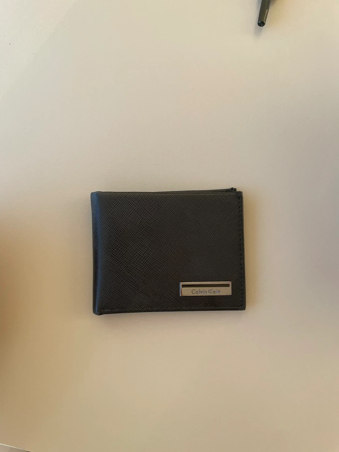 Selling a Calvin Klein black wallet. It's in great condition and ready for a new home! It's a classic and functional piece to keep your cards and cash organized.